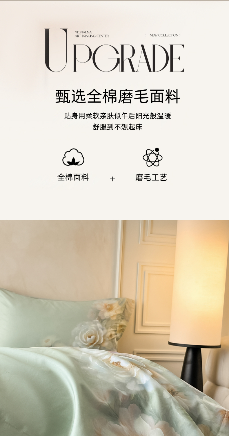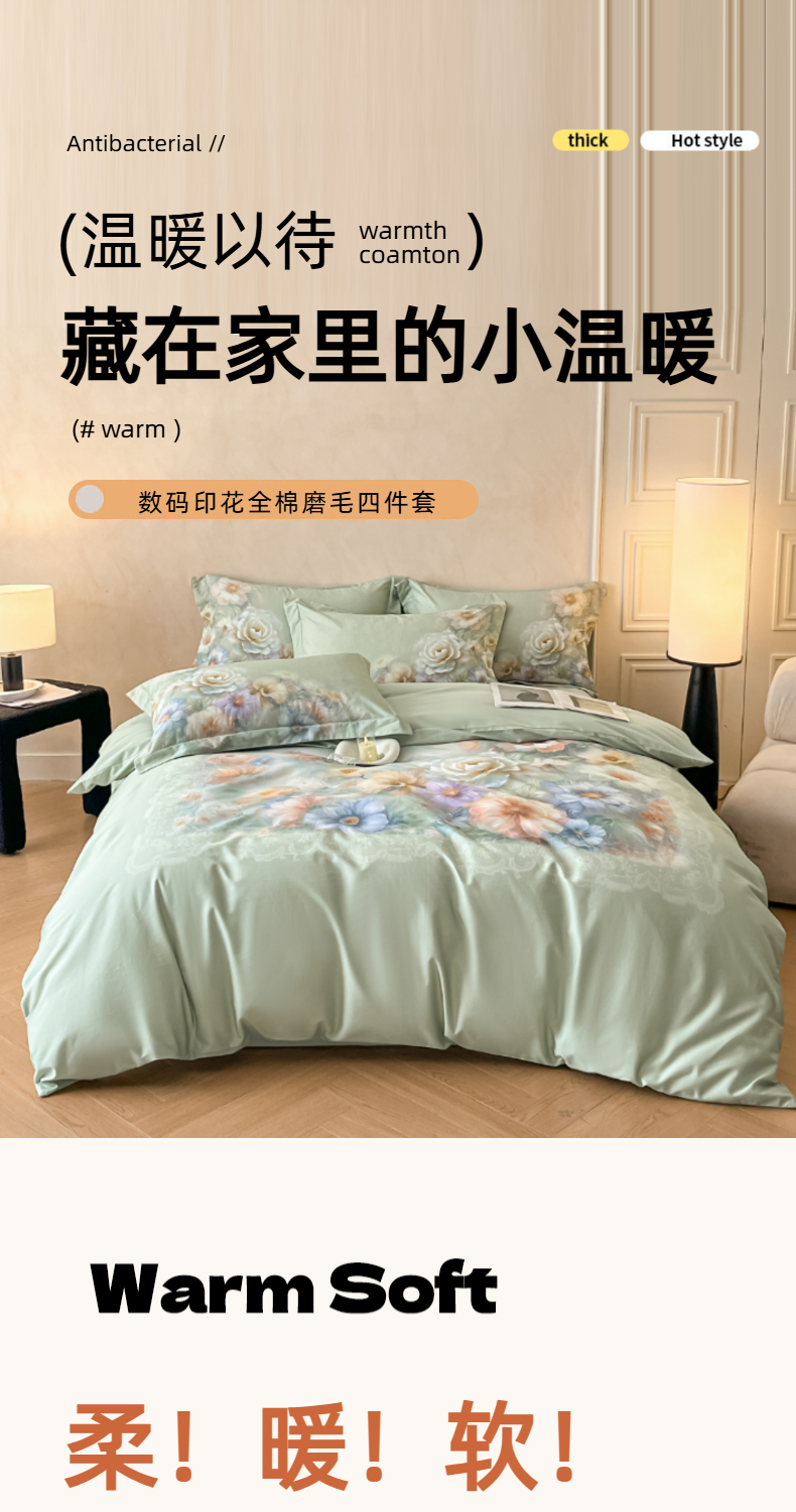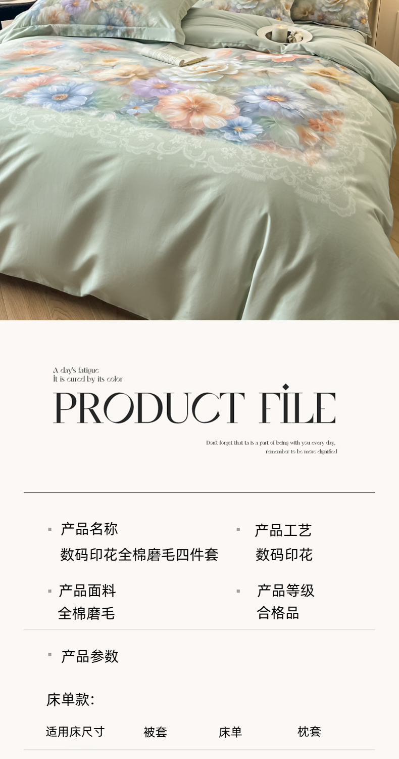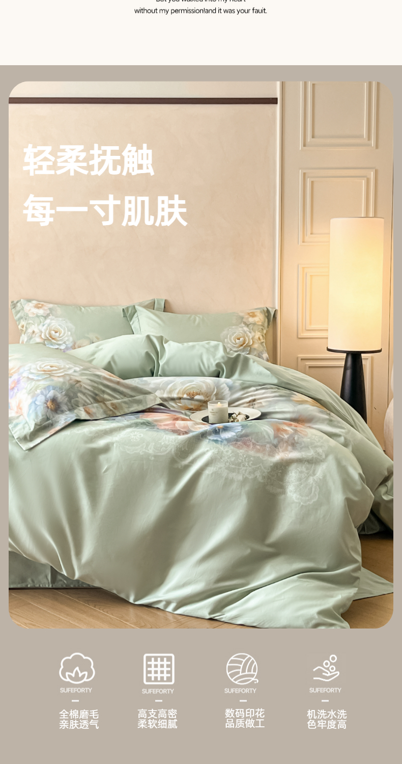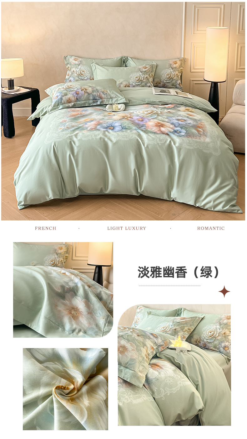 当前位置: 91家纺网 > 商品网购 > 床品套件 > 四件套 > 全棉普通四件套 > 禾时 2025新款全棉纯棉大版磨毛数码印花四件套(32x21磨毛) 淡雅幽香(绿)
