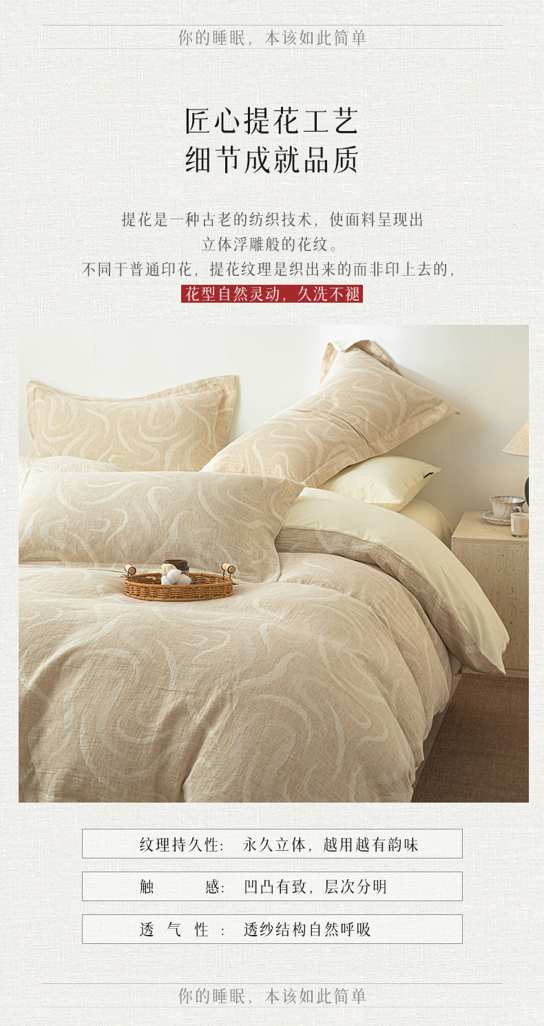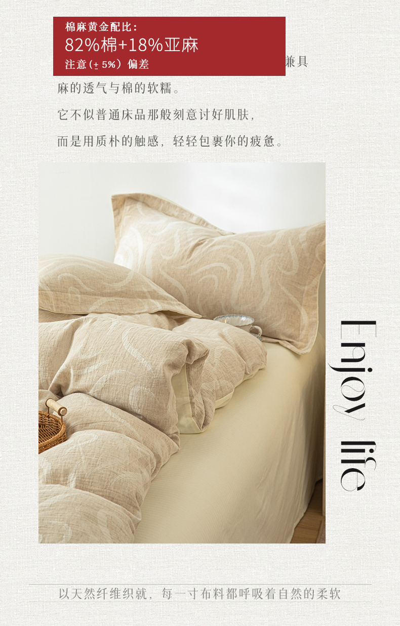 当前位置: 91家纺网 > 商品网购 > 床品套件 > 四件套 > 其它四件套 > 眠博士 2025新款AB面40支棉麻色织提花四件套 棉麻套件-灵韵