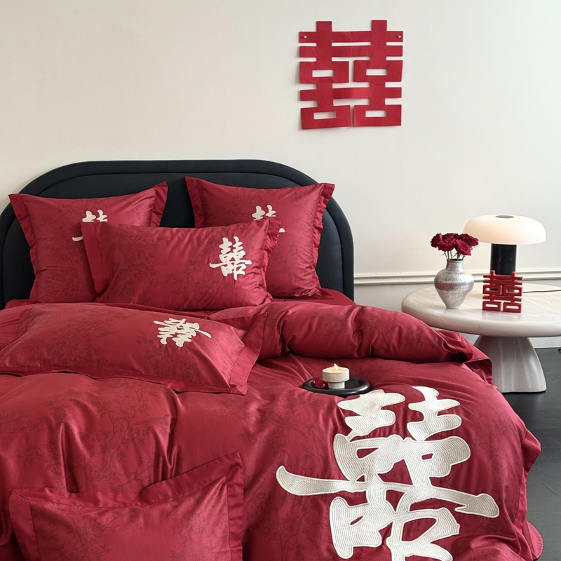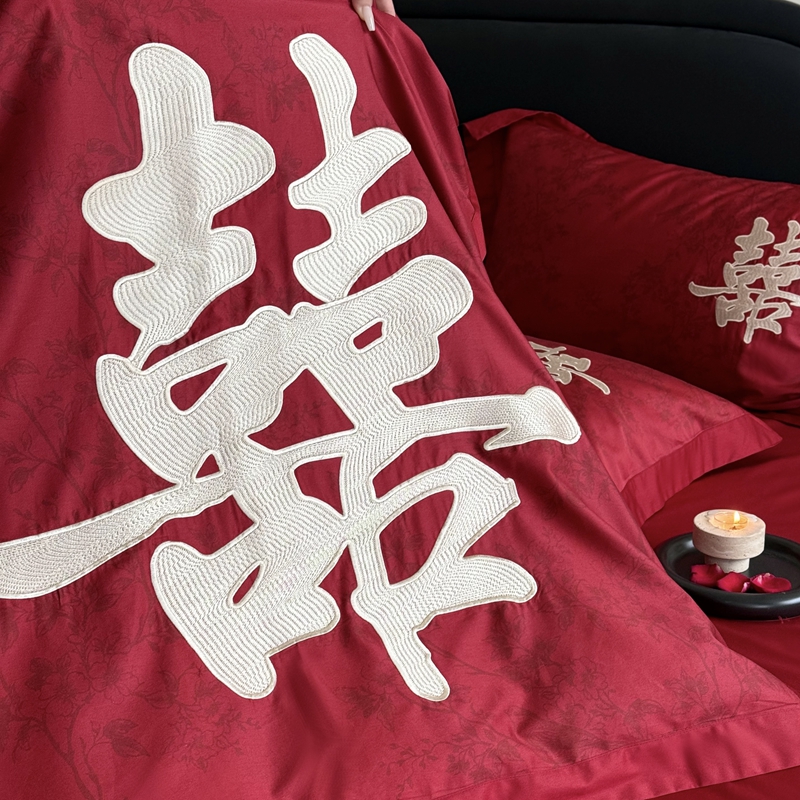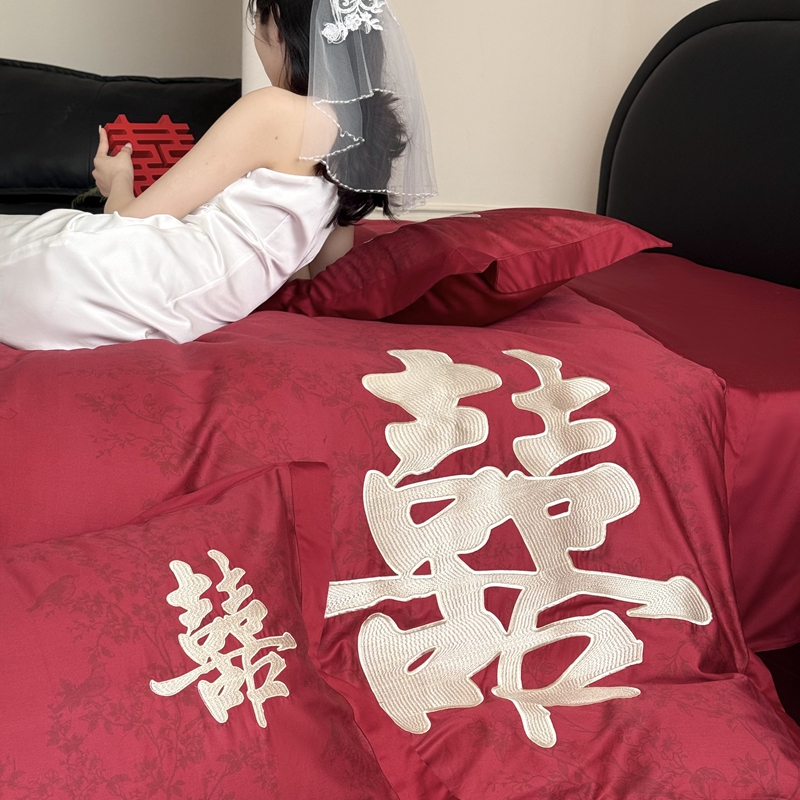 (总)江涞 2026新款100支长绒棉进口高端刺绣可摘卸流苏四件套-迎喜(淘宝券后不低于 418/438),迎喜