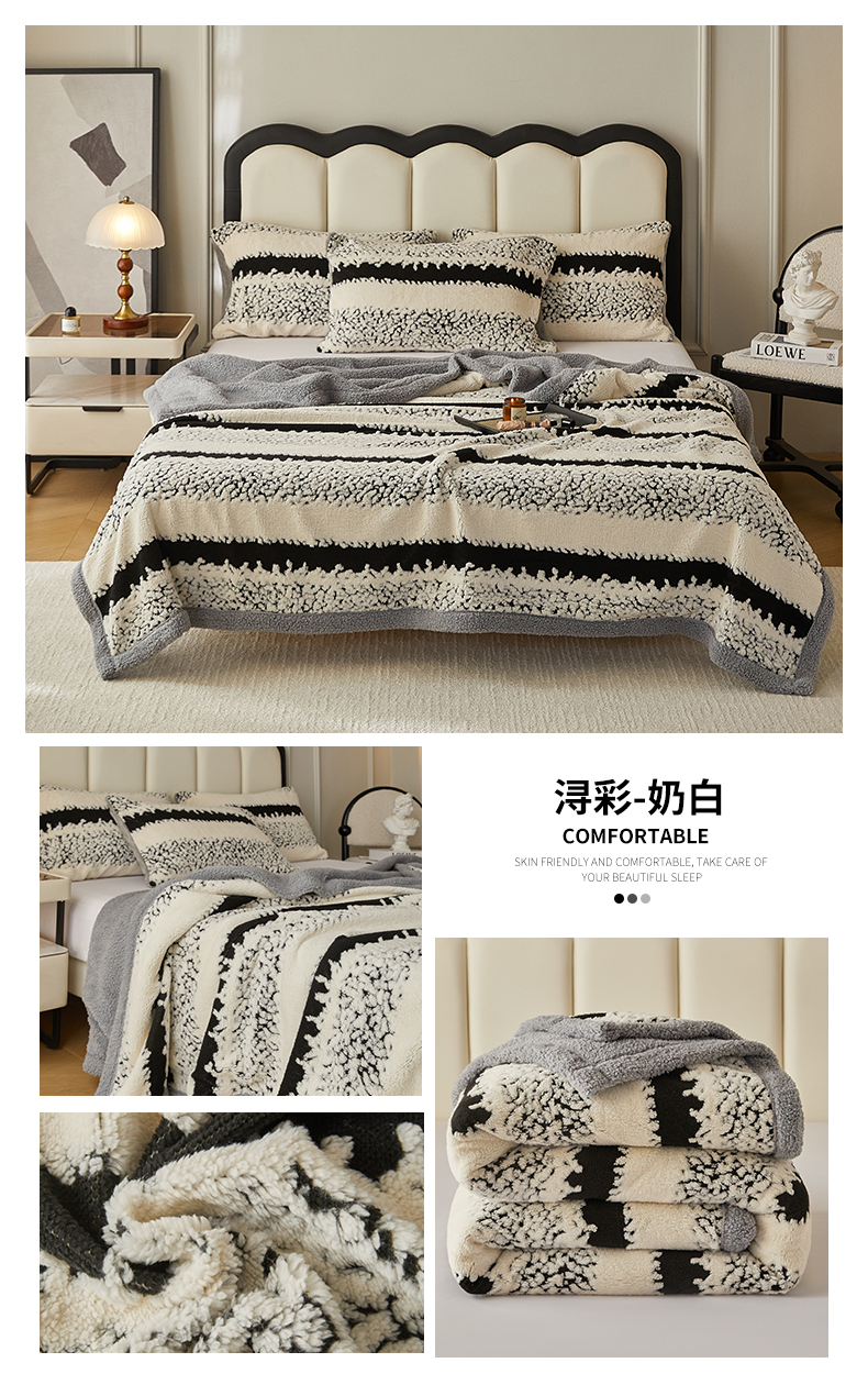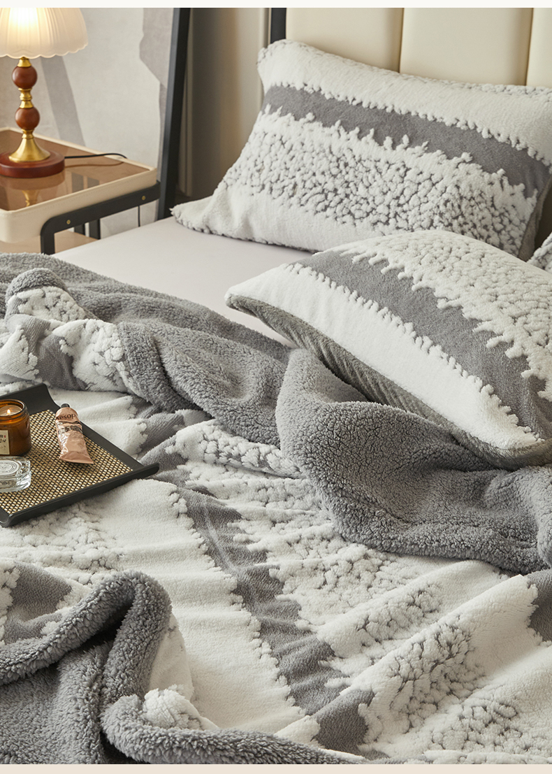 (总)莱家富 2026新款双层加厚阳离子提花毛毯羊羔绒毛毯盖毯办公室午休毯,浔彩-豆沙,浔彩-果绿,浔彩-灰色,浔彩-奶白,浔彩-天蓝,浔彩-驼色