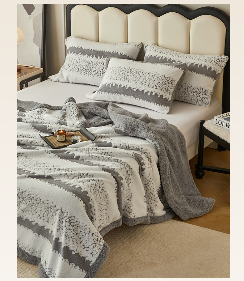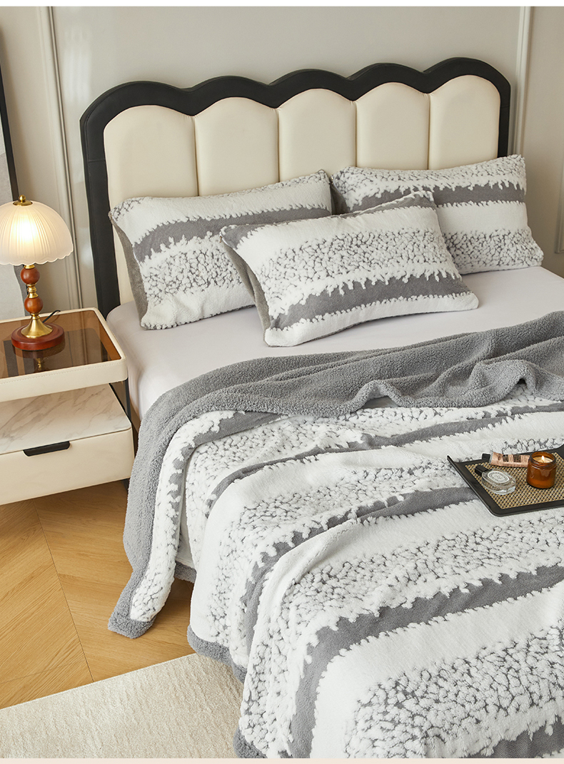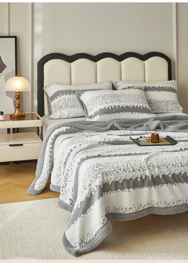 (总)莱家富 2026新款加厚双层复合毯舒棉绒剪花毛毯,兰色,绿色,米色,深灰色,樱花粉,紫色