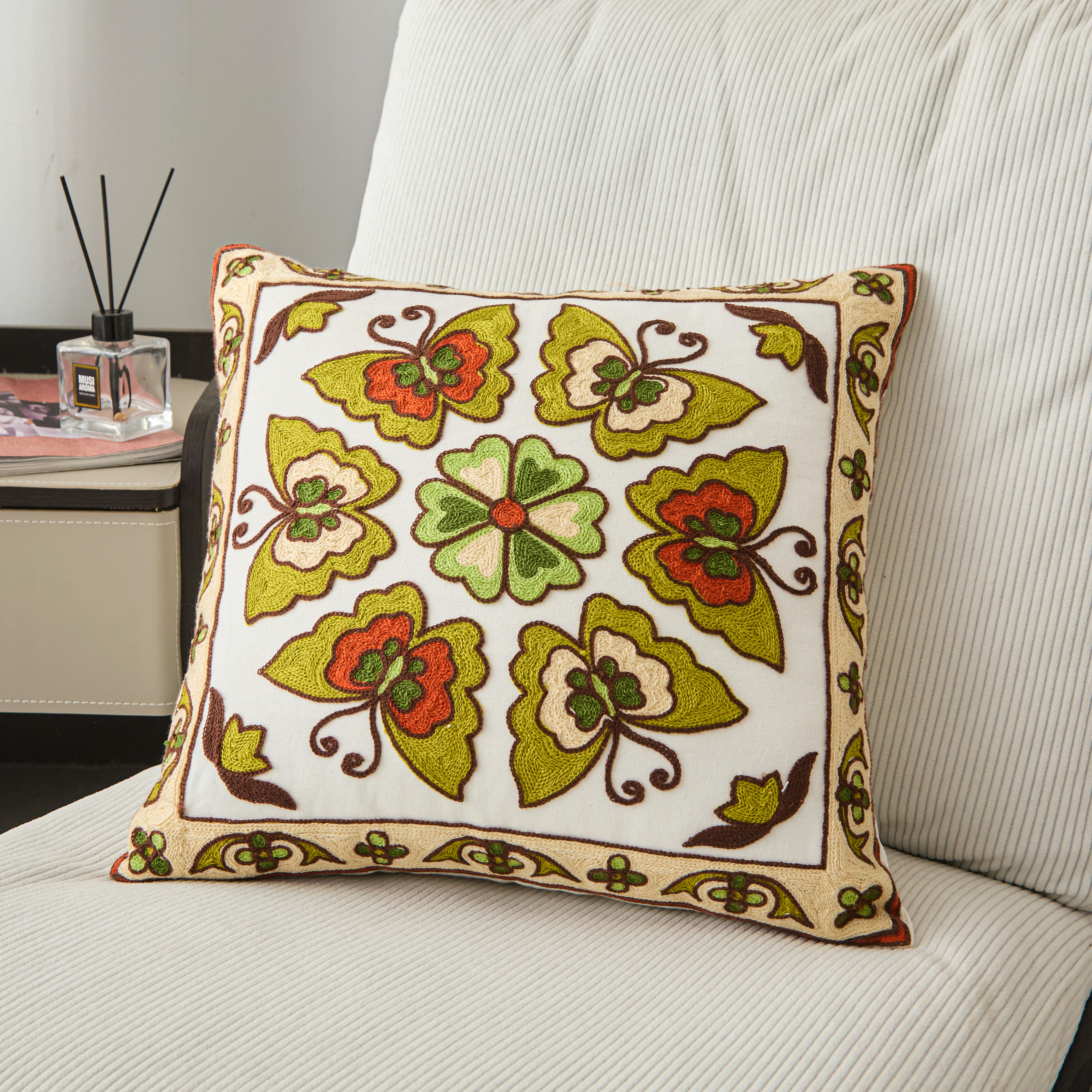 (总)诺可 2025新款全棉毛巾绣抱枕跨境花物语系列,组合,模特图,彩色石,蝶影,繁华拾光,粉蝴蝶,禾穗,花环,花卉-橙,花卉-粉,花雾,花盏,岚山,林礼,绿蝴蝶,蔓藤,木瑾花,南瓜,霓虹,柠檬叶,山奈,石榴蓝,石榴紫,树叶,禧朵,夏日铃兰,向阳花,星葵,叶坊,雨棠,枝瑾,紫蝴蝶,紫蕊,磨毛布单抱枕芯