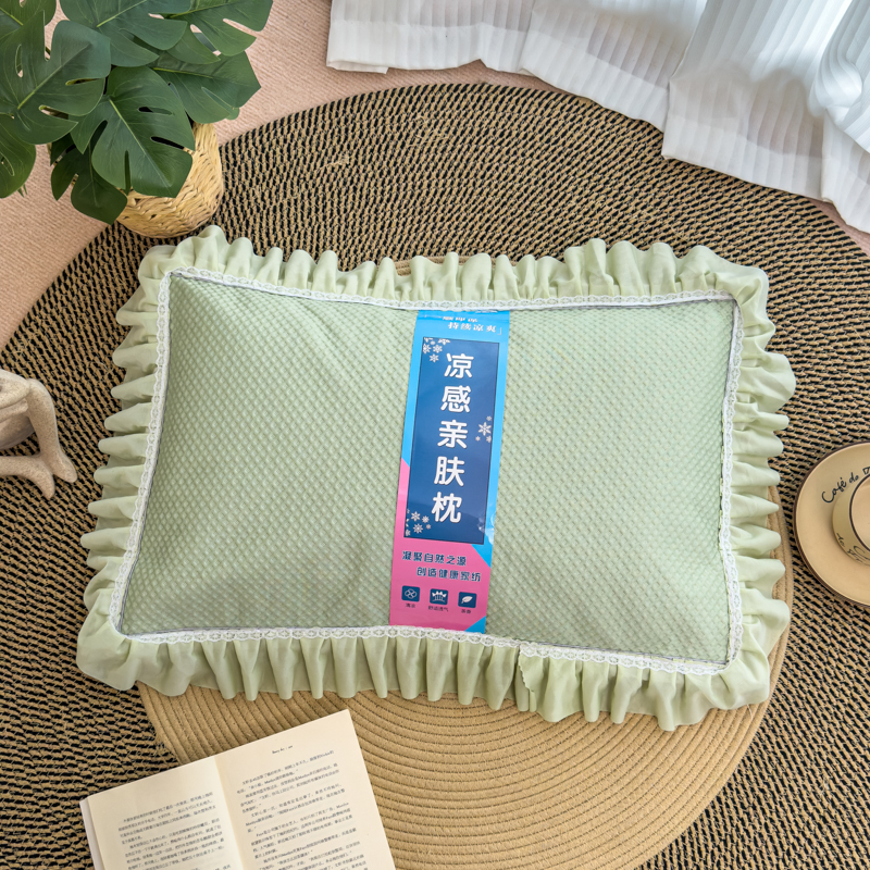 商品名称:诺可 2025新款夏凉茶叶枕凉感凉豆豆枕头枕芯 花边灰