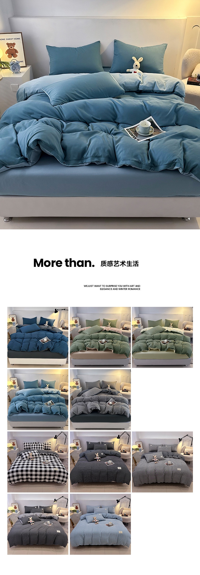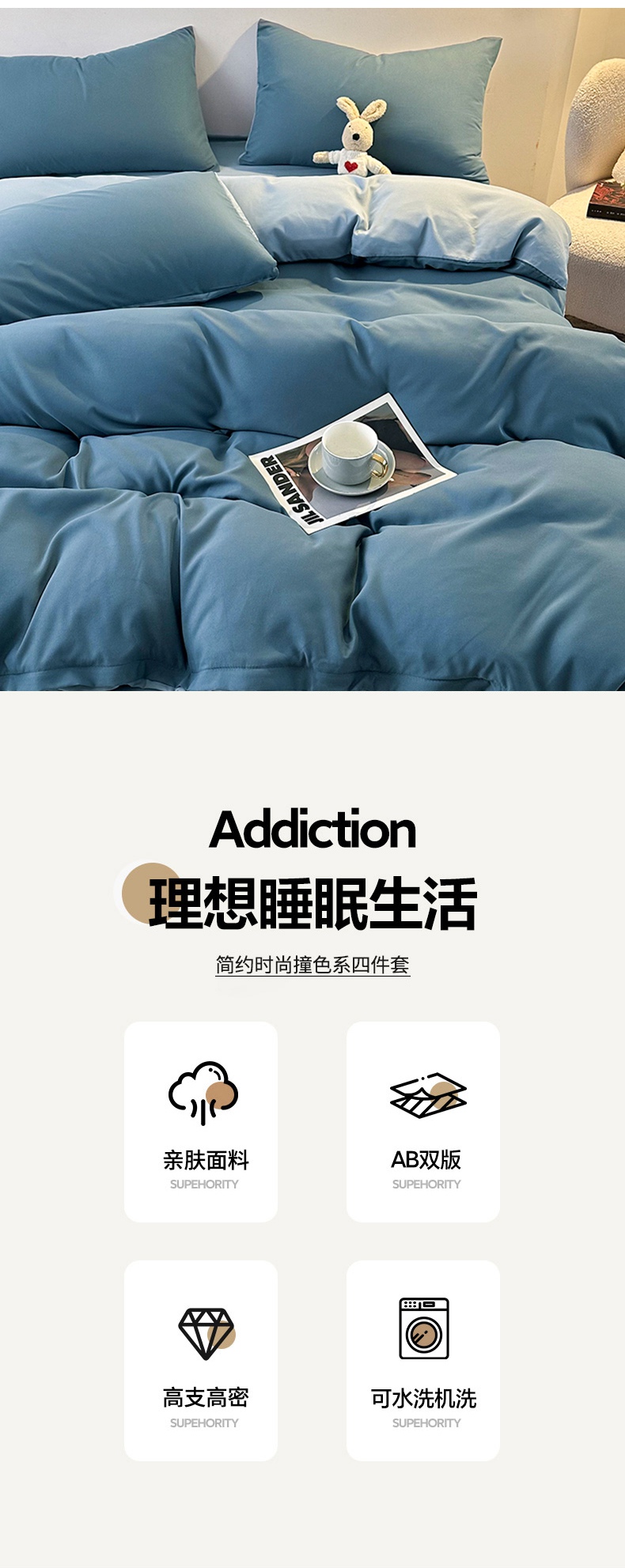 当前位置: 91家纺网 > 商品网购 > 床品套件 > 四件套 > 普通磨毛四件套 > 优纤家纺 2025新款简约亲肤四件套床单床笠学生三件套-纯色混搭系列 蔚蓝浅蓝