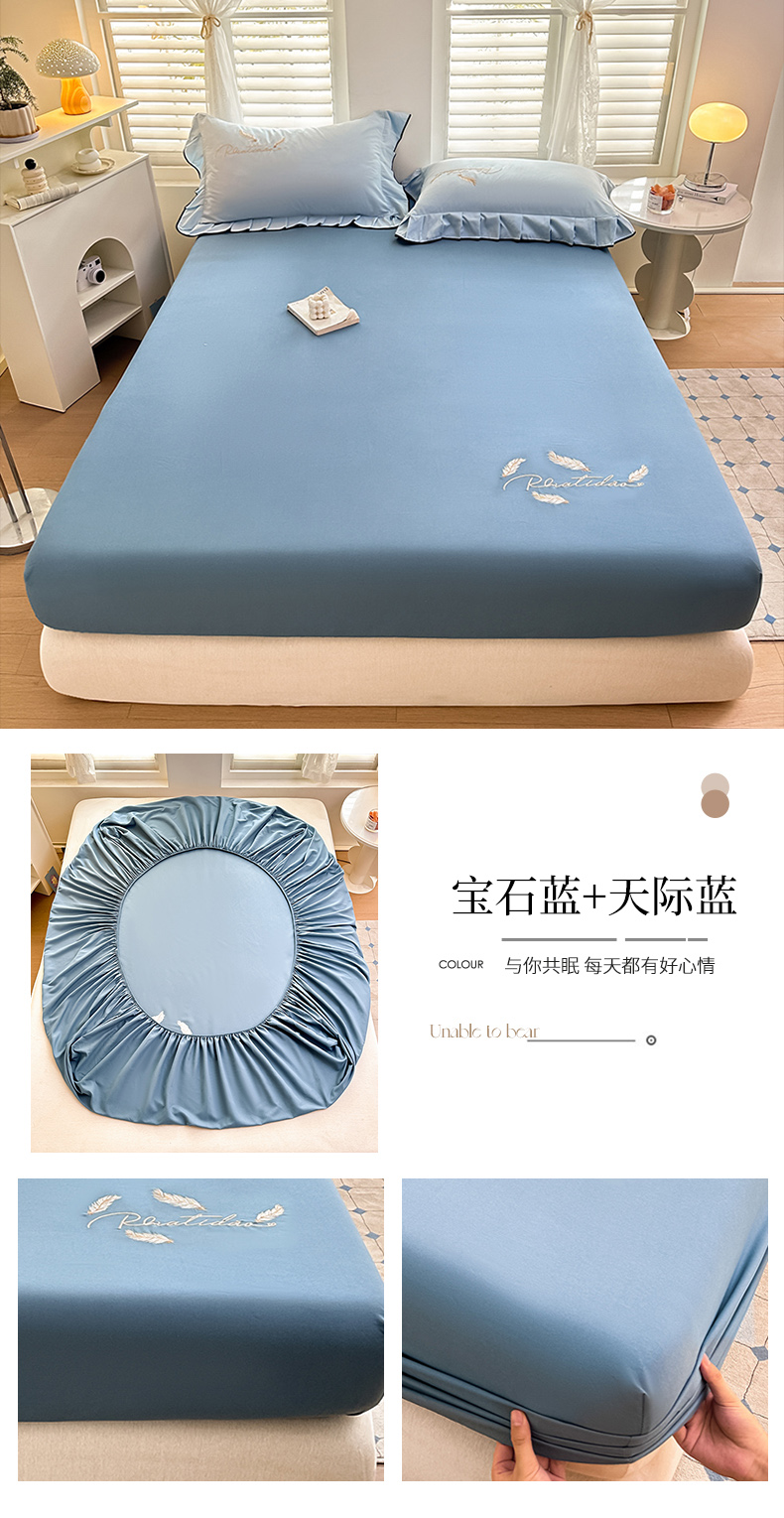 柔享家(原芷澜家纺) 2025新款法式纯色水洗棉刺绣绣花磨毛床笠汇总(有同款四件套) 宝石蓝+天际蓝