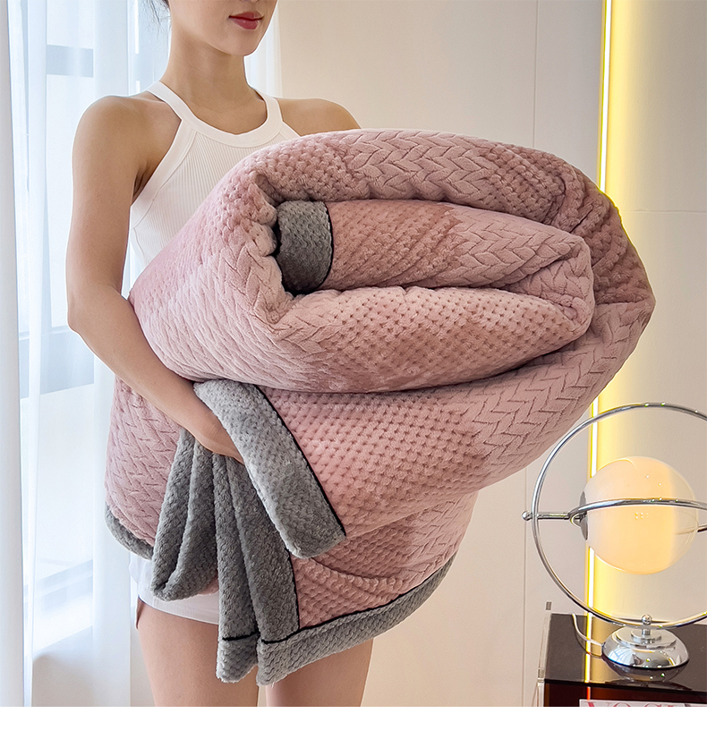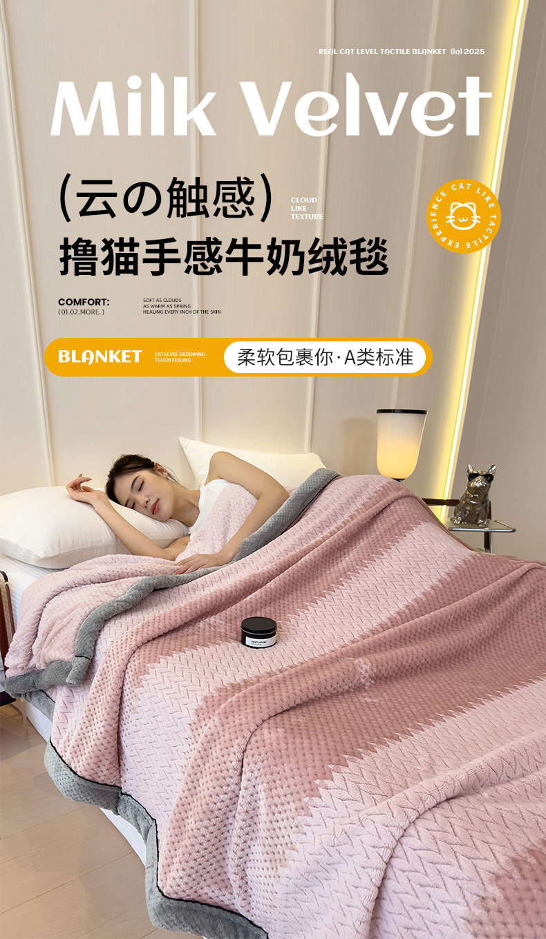 世纪绒品 2025新款A类撸猫色织牛奶绒多功能毛毯 艾森-豆沙