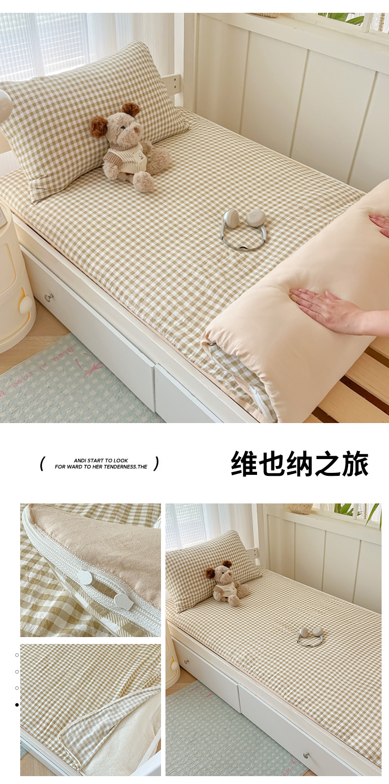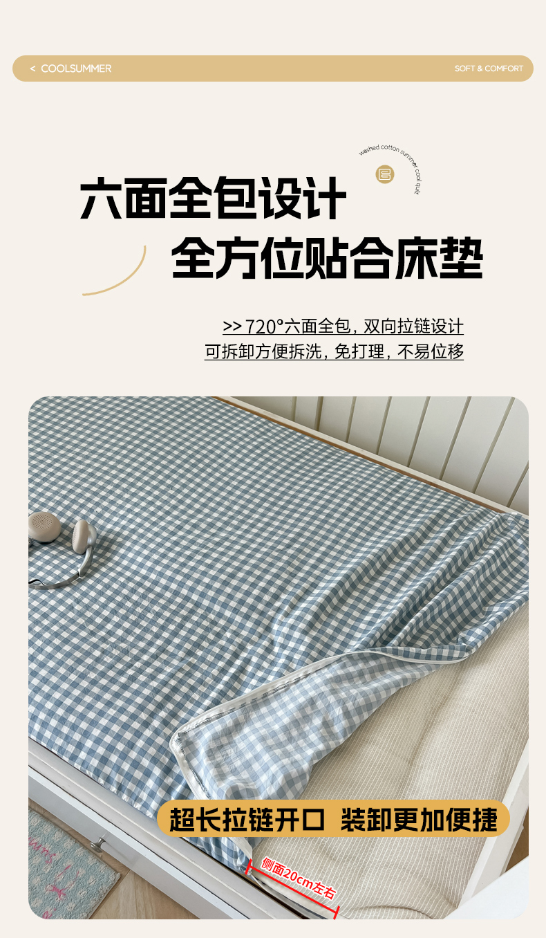 商品名称:(总)2025新款开学季学生床垫套床褥套褥子套无印风格子水洗棉床垫套寝室宿舍单人90x200床垫套