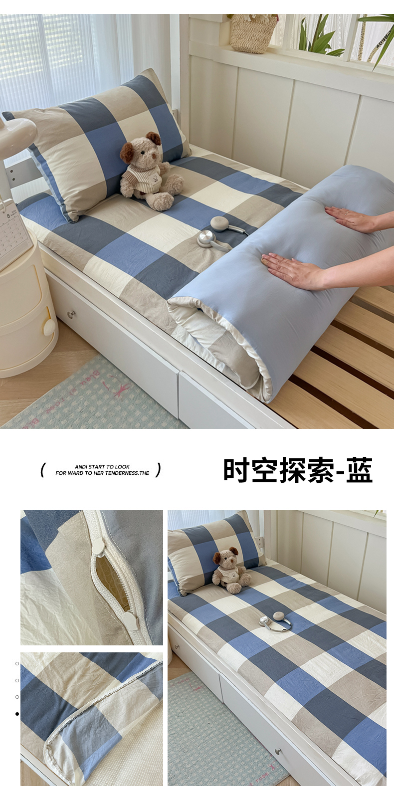 (总)2024新款学生季无印风水洗棉三件套夏天宿舍上下铺学生六件套 ,年少勇为,维也纳之旅,时空探索-咖,时光漫步,致青春,同桌的你,时空探索-蓝