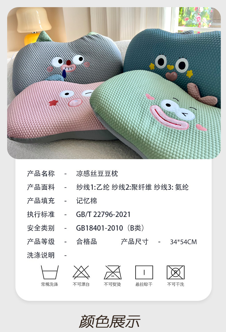 商品名称:(总)诺可 2025新款凉感凉豆豆记忆枕猫肚枕枕头枕芯-小怪兽