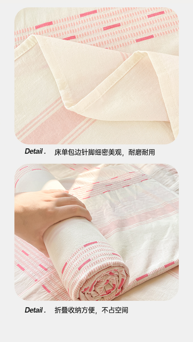 灰鲸 2025新款全棉色织提花单品床单 素瑾-粉