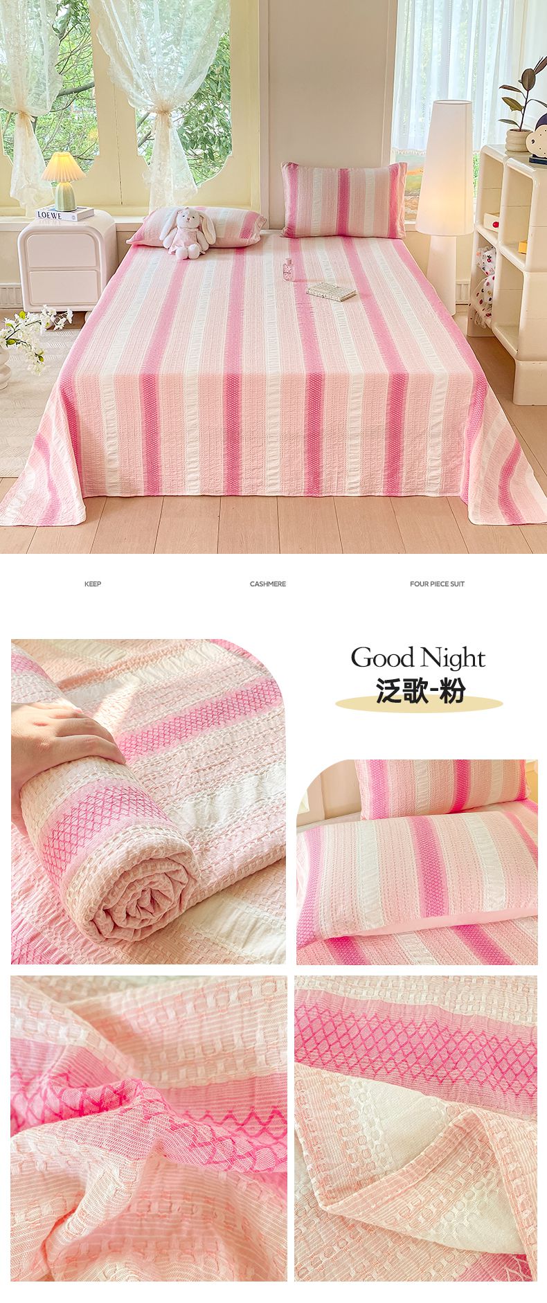 • 91家纺网 家纺一手货源 找家纺 灰鲸 2025新款全棉色织提花单品床单 素瑾-粉