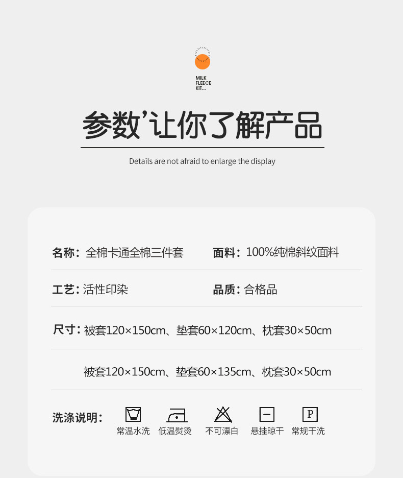 被套120*150cm,垫套60*135cm,枕套30*50cm