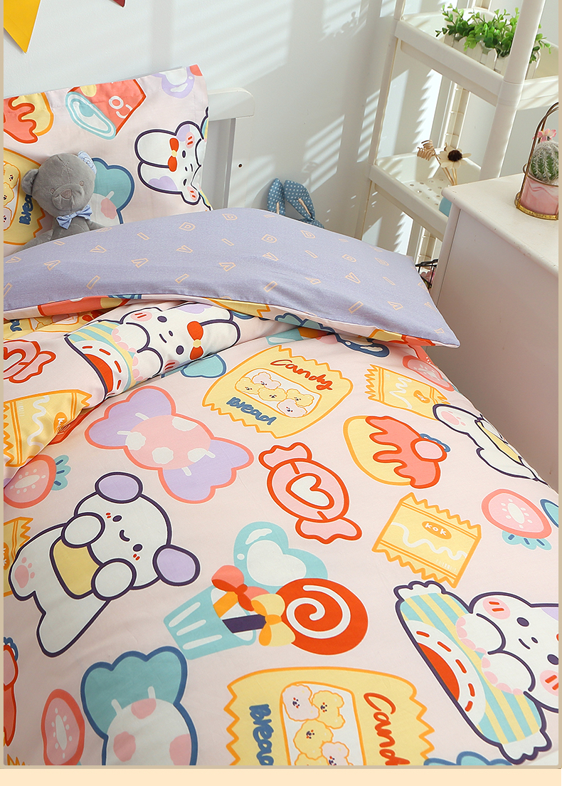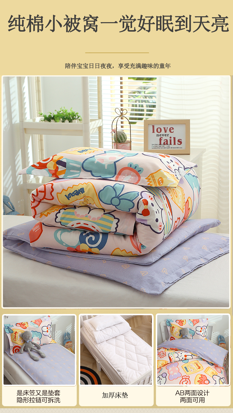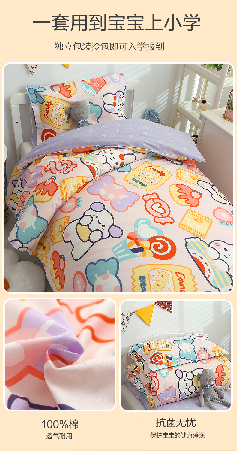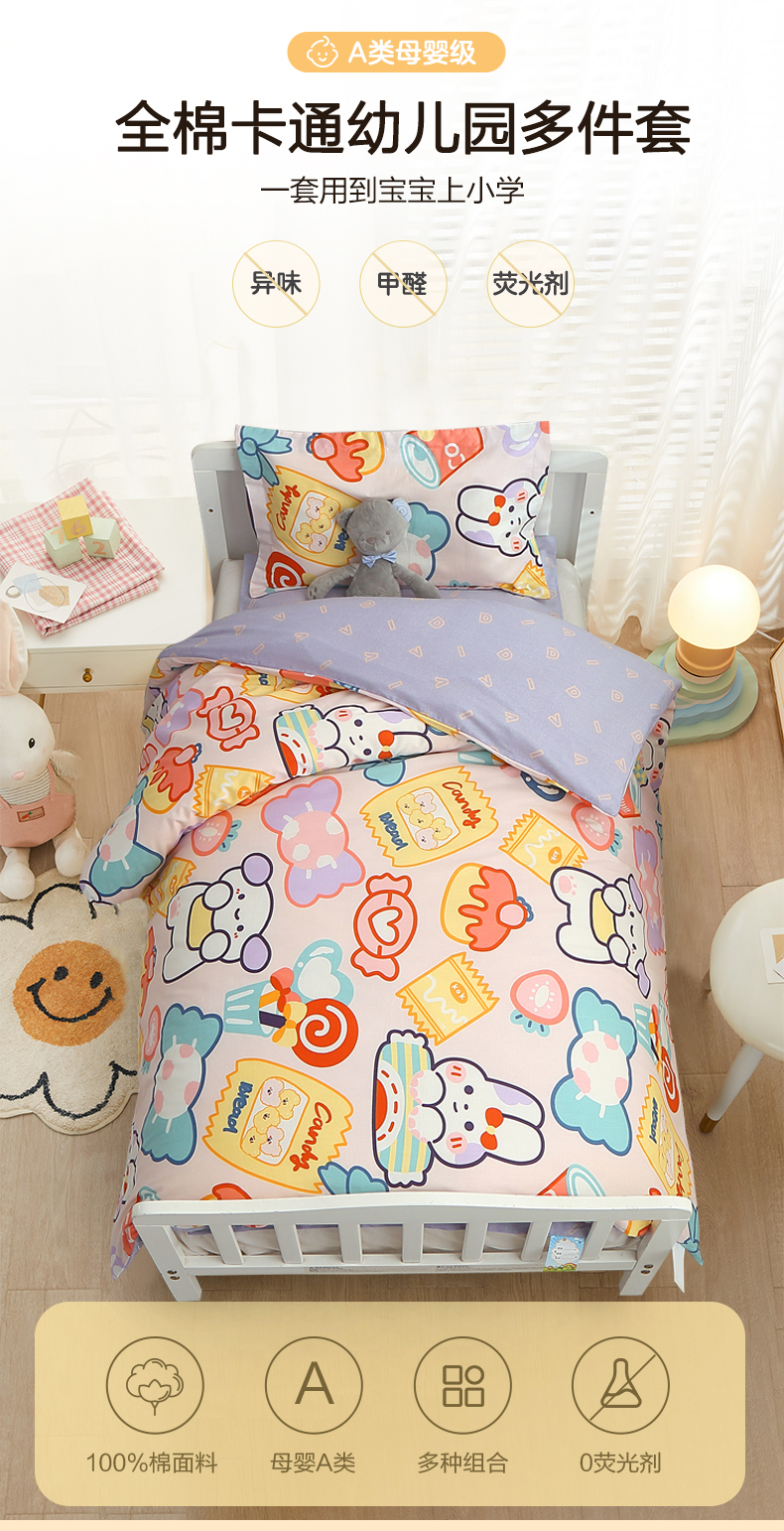(总)八零年代 2025新款学生季特惠 全棉幼儿园三件套13372纯棉卡通三件套被套,彩虹熊,工程车,可爱狮子,恐龙家族,恐龙乐园-黄, 恐龙乐园-蓝, 露露兔,萌宠乐园,泰迪小熊