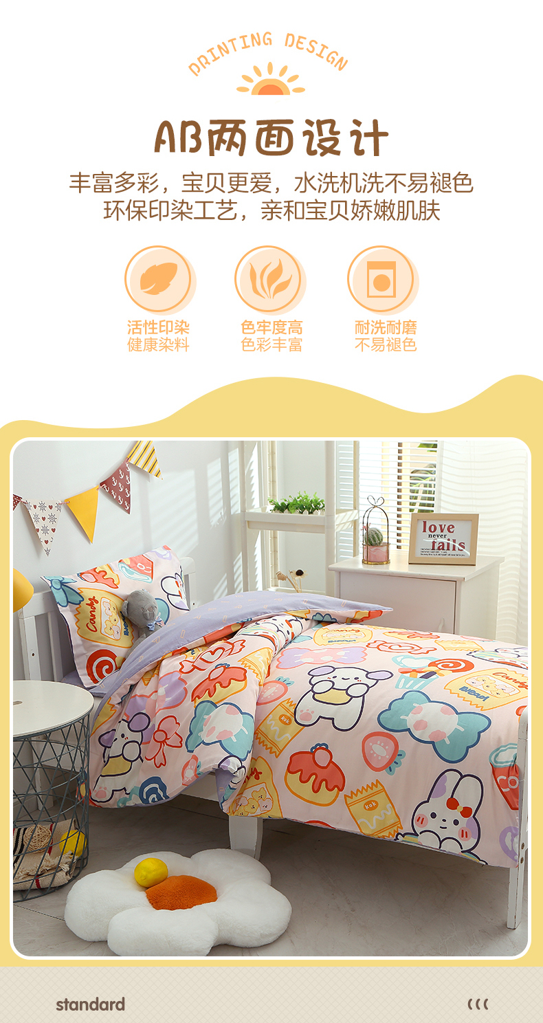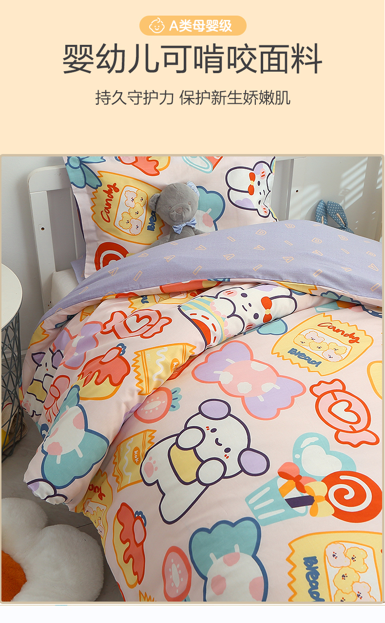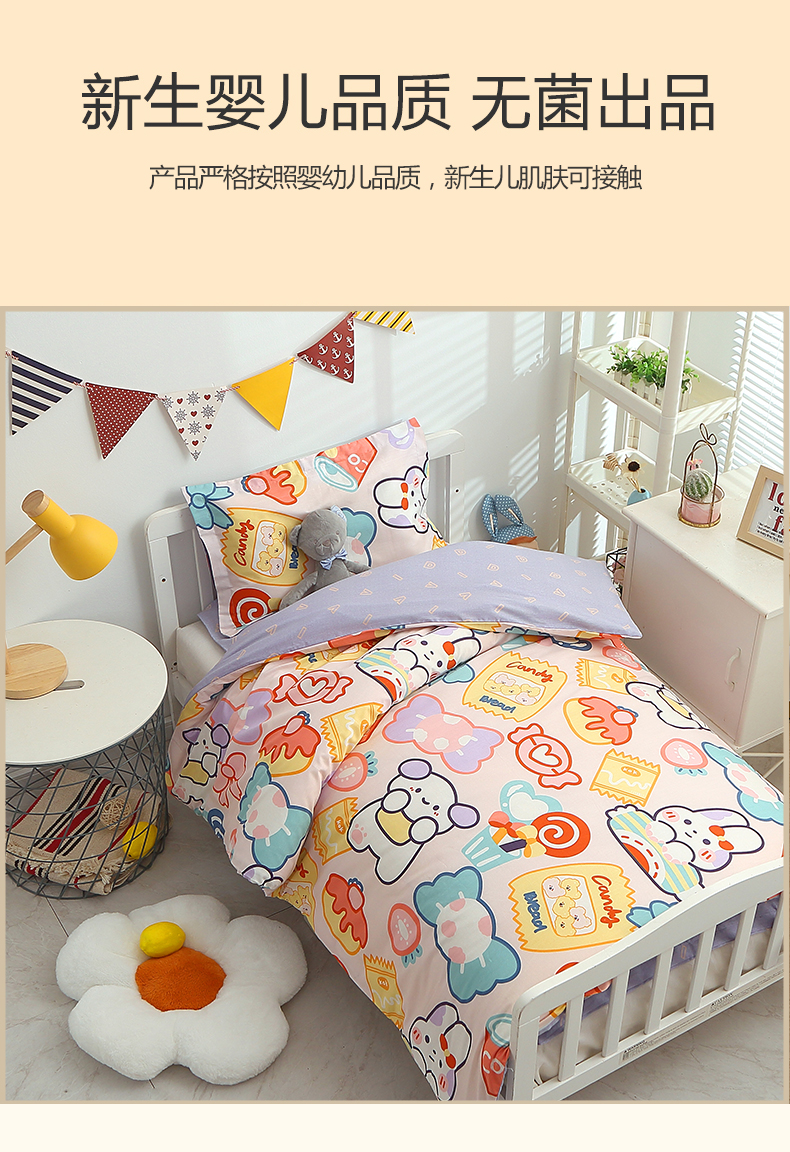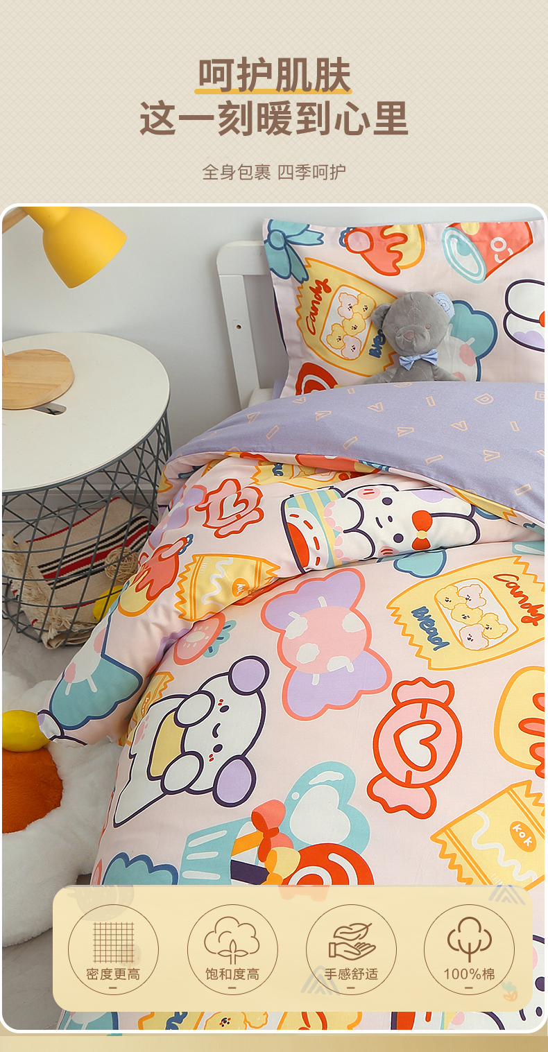 (总)八零年代 2025新款学生季特惠 全棉幼儿园三件套13372纯棉卡通三件套被套,彩虹熊,工程车,可爱狮子,恐龙家族,恐龙乐园-黄, 恐龙乐园-蓝, 露露兔,萌宠乐园,泰迪小熊