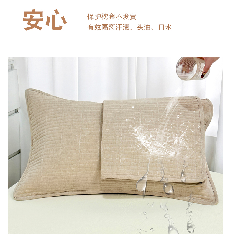 商品名称:拾小柒 2025新款全棉色织水洗棉防水防头油枕套 卡其色