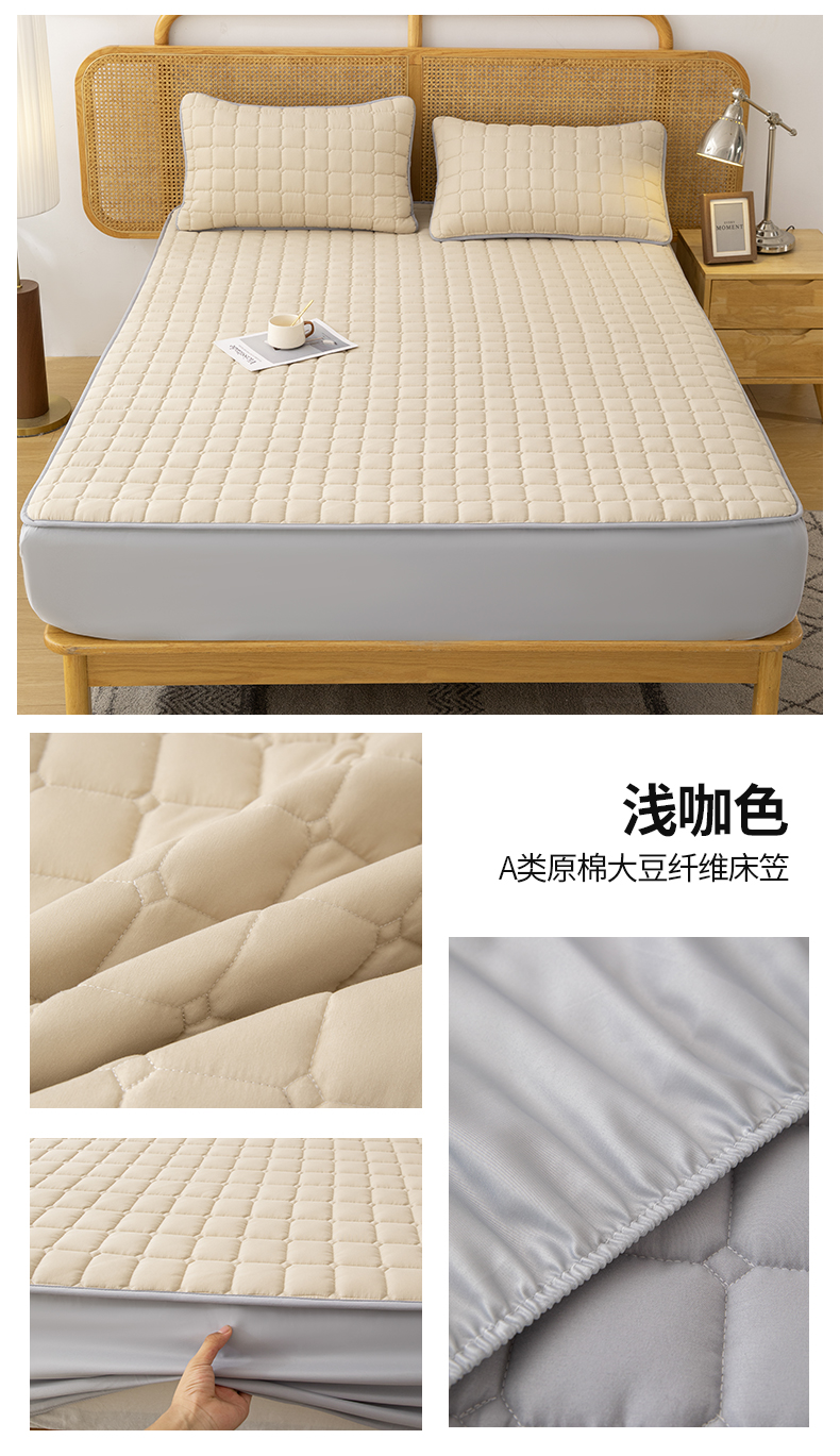 商品名称:拾小柒 2025新款A类原棉大豆纤维加厚床褥子床垫保护垫床笠款 浅咖色