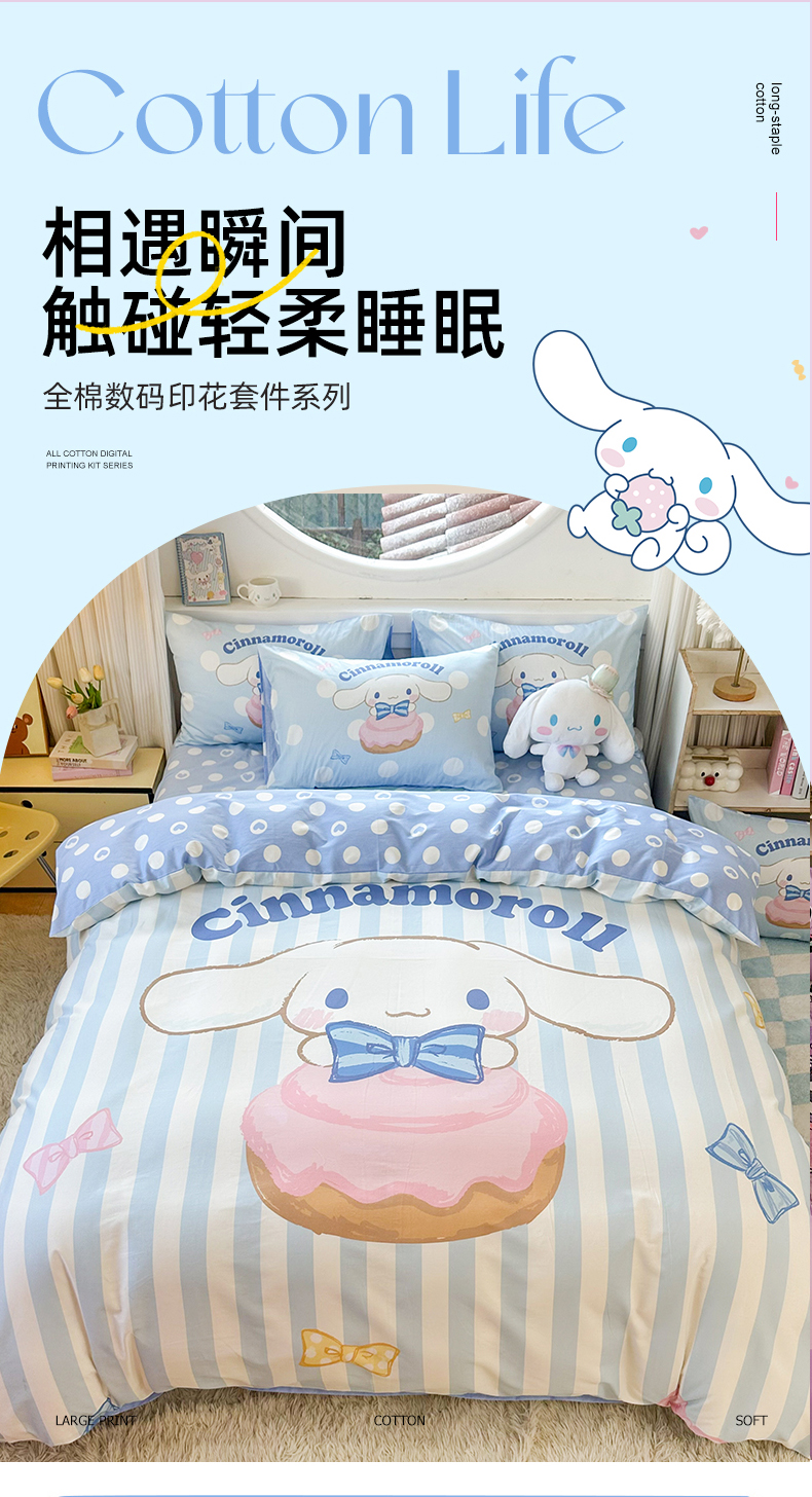 当前位置: 91家纺网 > 商品网购 > 床品套件 > 四件套 > 全棉普通四件套 > 玉元坊 2025新款大版三丽鸥系列全棉纯棉床单纯棉床裙三四件套简约款 领带玉桂狗