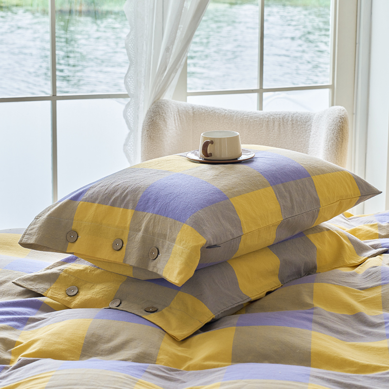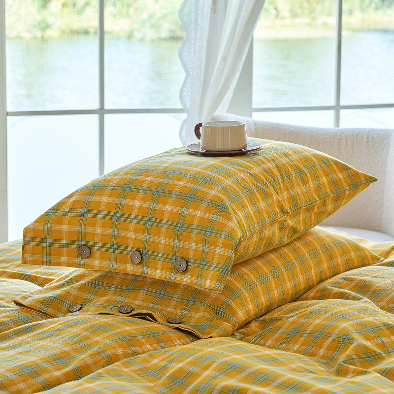 贝尔 PELLHOME 全棉纽扣色织水洗棉格子四件套单品系列-单枕套(可抖音代发) 泊雅-桔