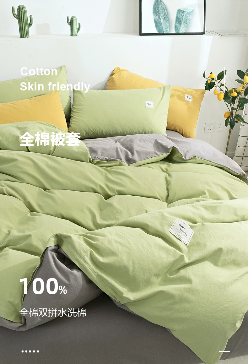 • 91家纺网 家纺一手货源 找家纺 贝尔 PELLHOME 纯棉被套单件良品水洗棉全棉被罩纯色(春节不打烊)(可抖音代发) 浅绿纯色