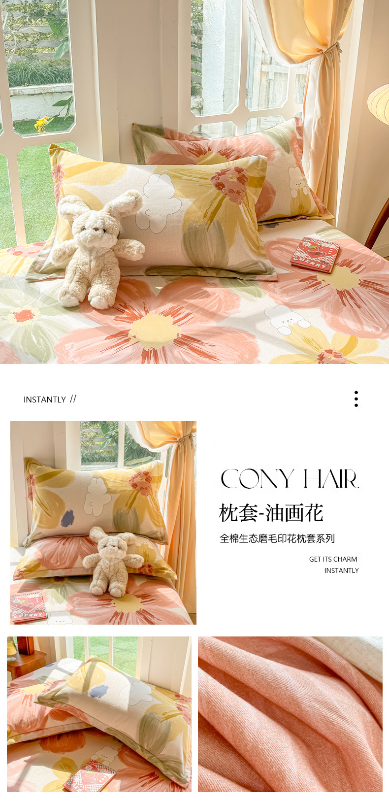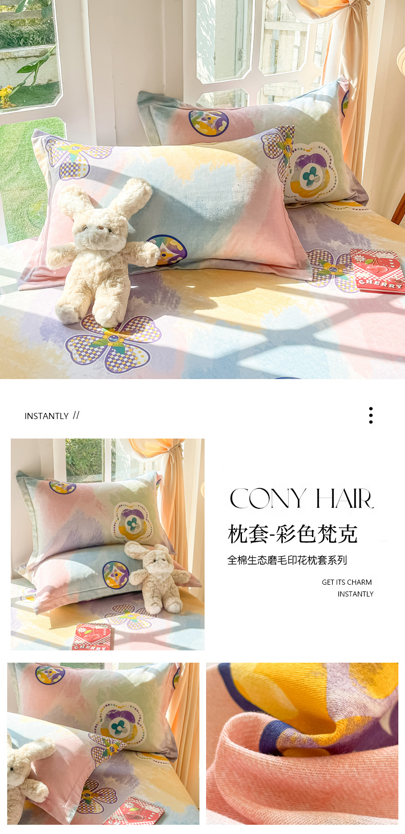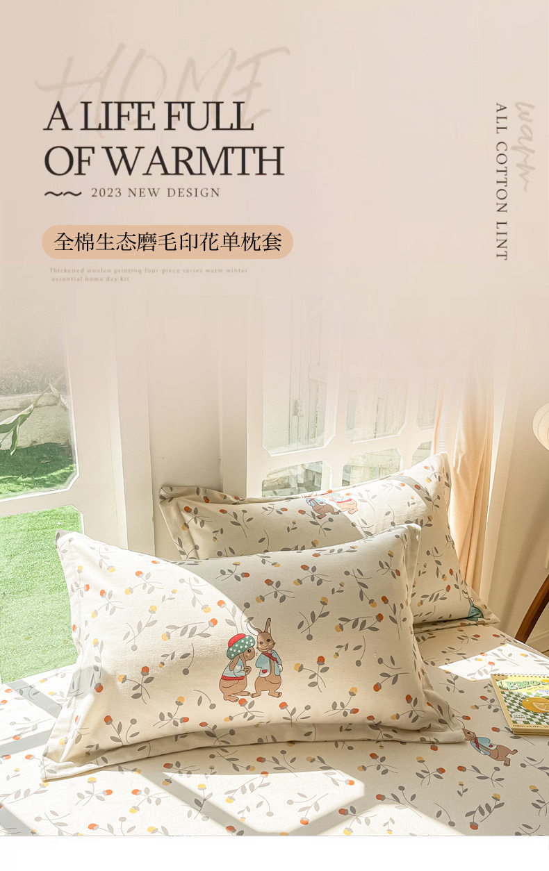 商品名称:眠博士 2025新款全棉混纺生态磨毛印花单枕套 磨毛枕套-皮特兔