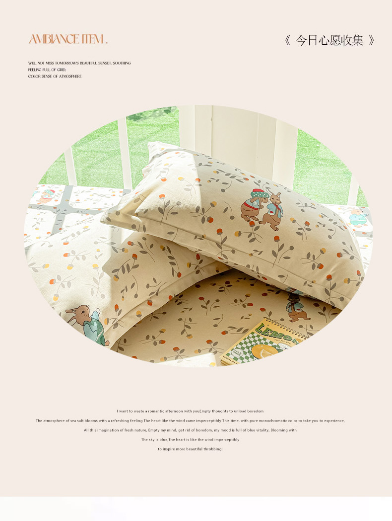 眠博士 2025新款全棉混纺生态磨毛印花单枕套 磨毛枕套-皮特兔