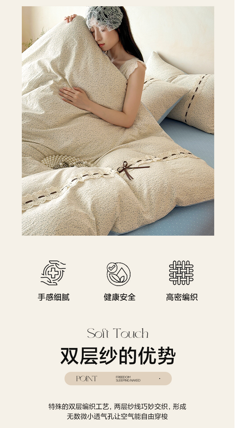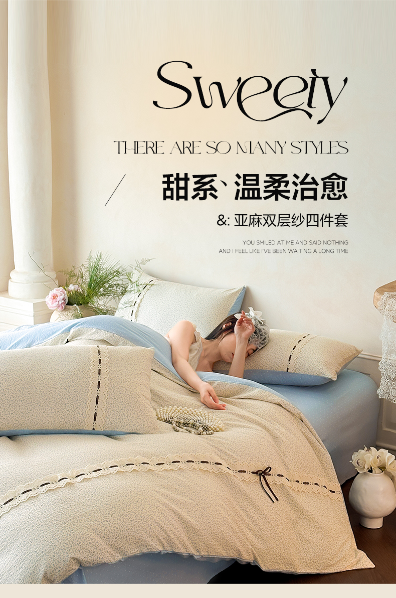(总)遇见家居生活馆 2025新款亚麻双层纱印花四件套-往事,往事-枫叶红,往事-复古咖,往事-奶油黄,往事-浅灰色,往事-深灰色