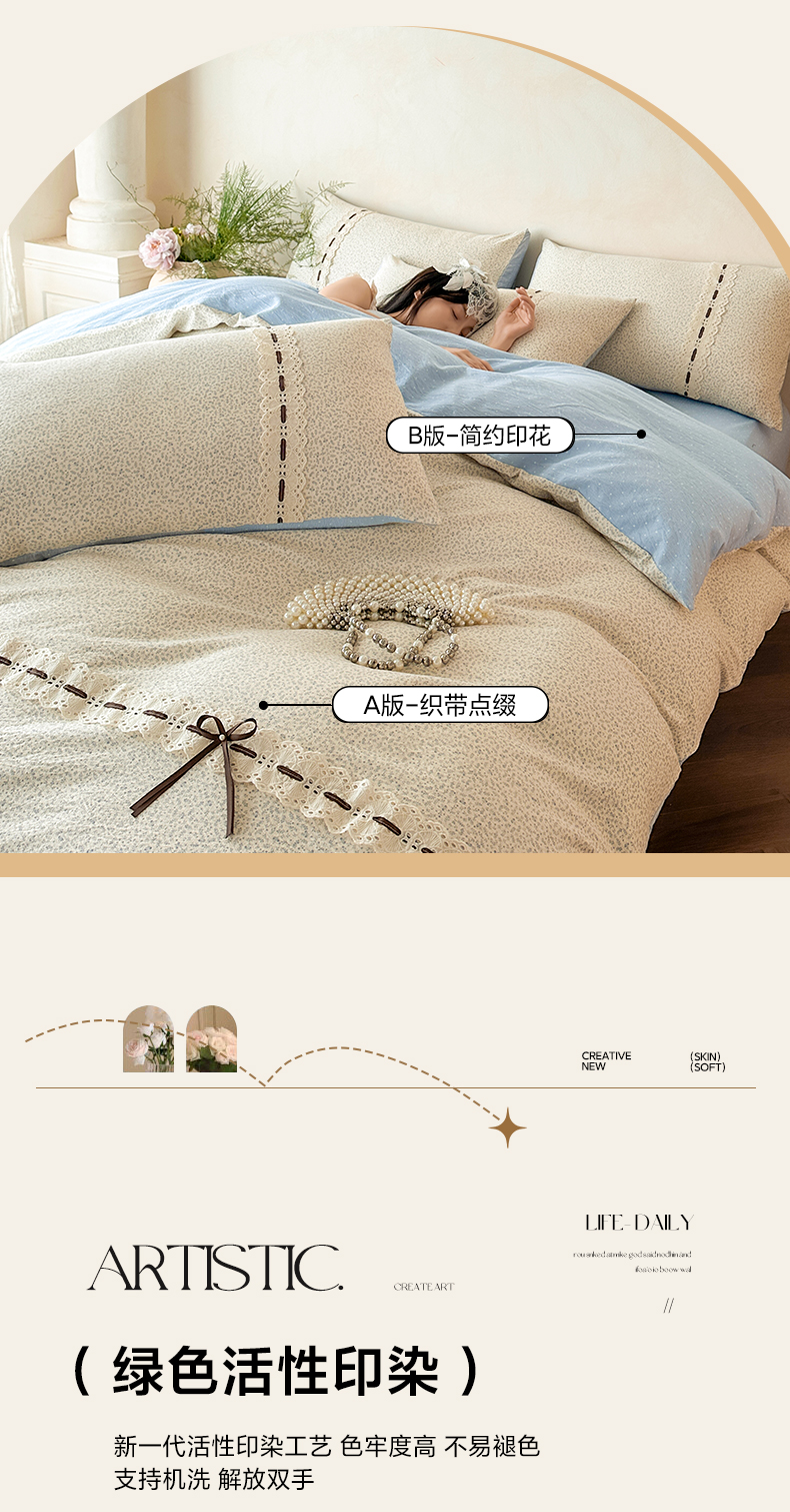 (总)2025新款小清新全棉纯棉四件套-若溪,麦田绿,茉莉奶白,霞光紫,杏花粉,雪山粉
