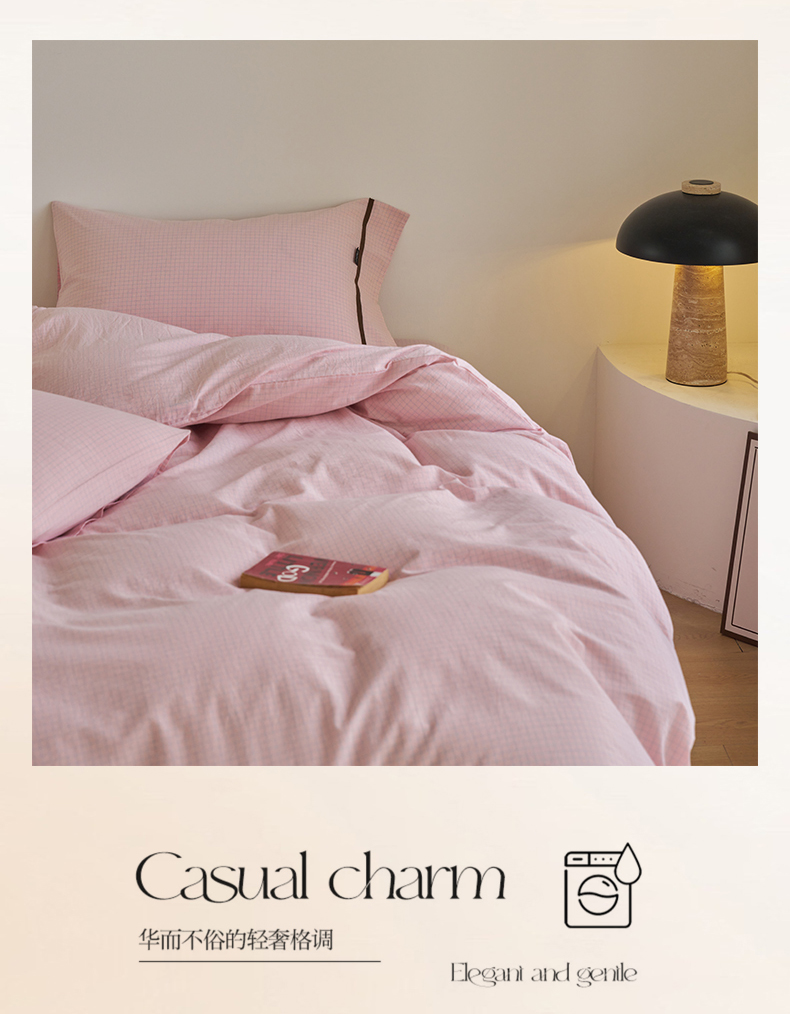贝尔 PELLHOME A类全棉色织水洗棉四件套--山河系列(可抖音代发) 山河-粉