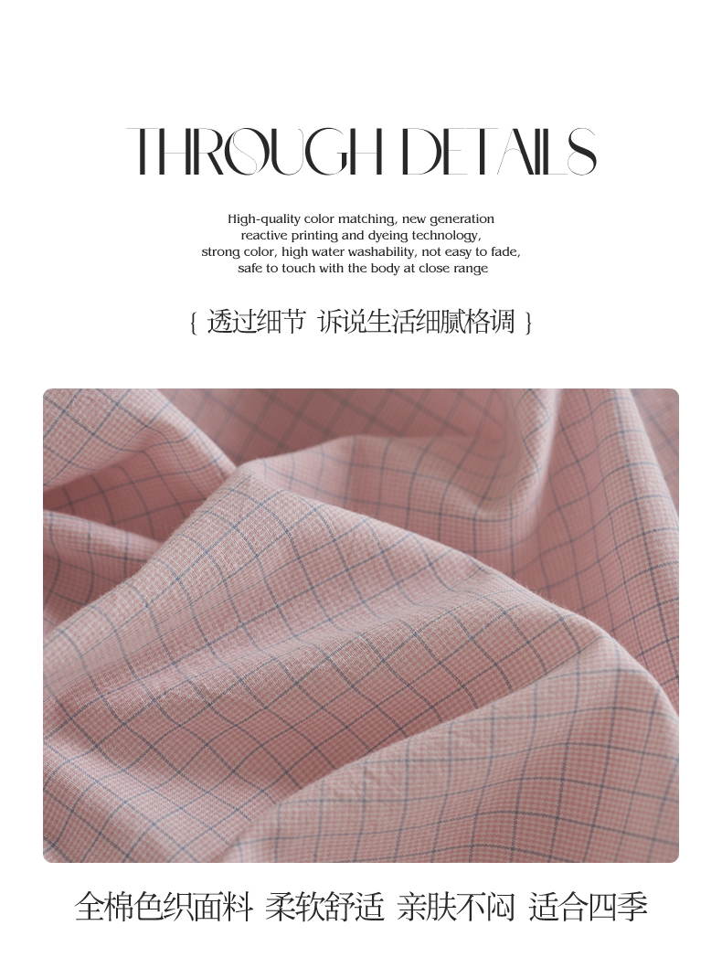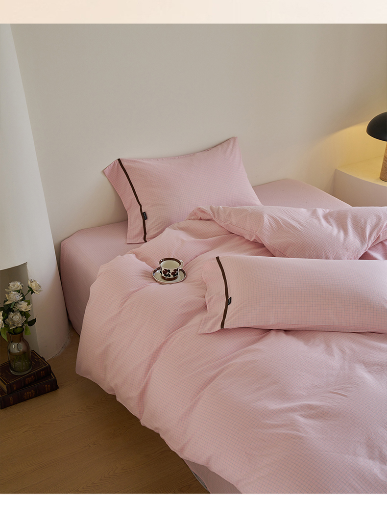 商品名称:贝尔 PELLHOME A类全棉色织水洗棉四件套--山河系列(可抖音代发) 山河-粉
