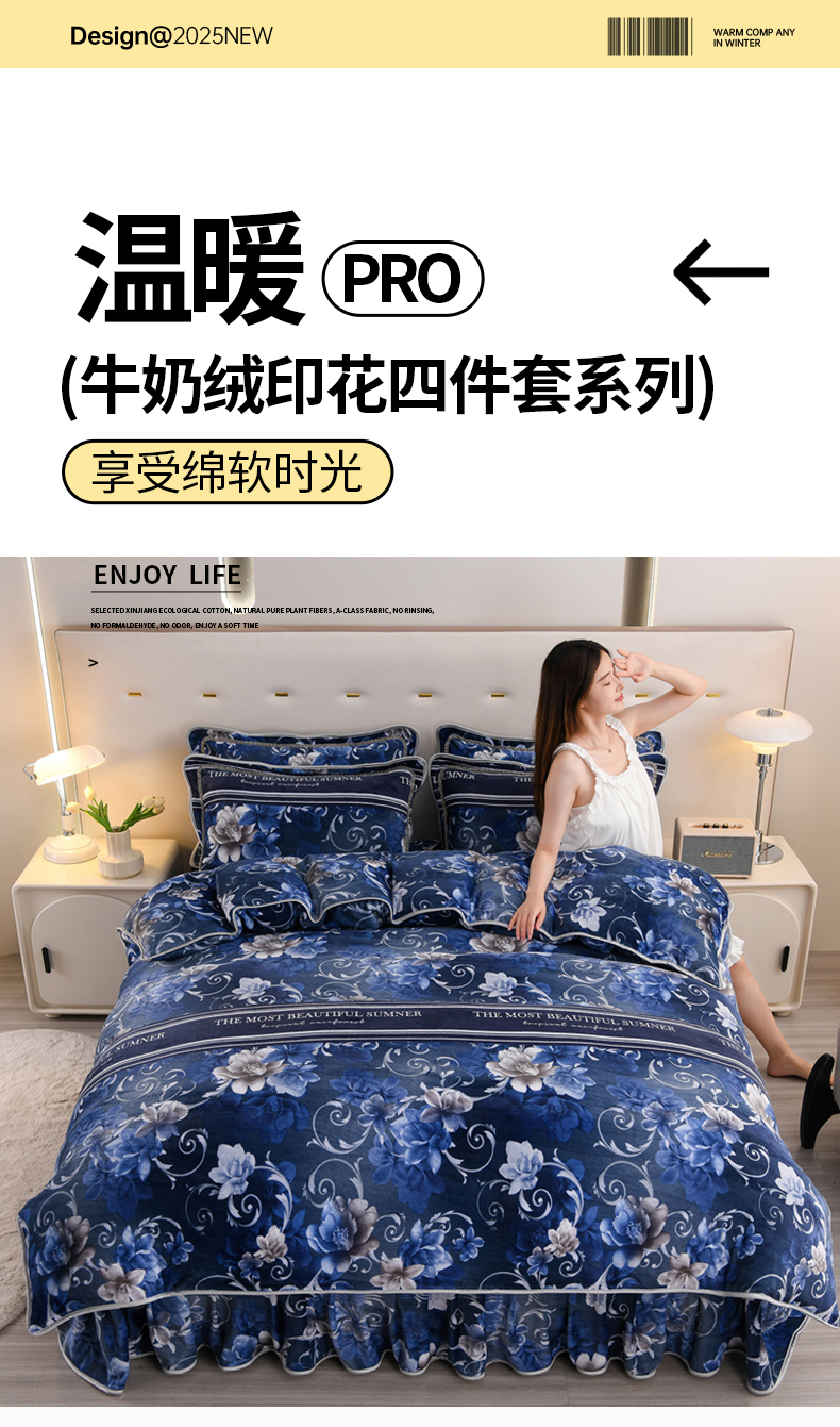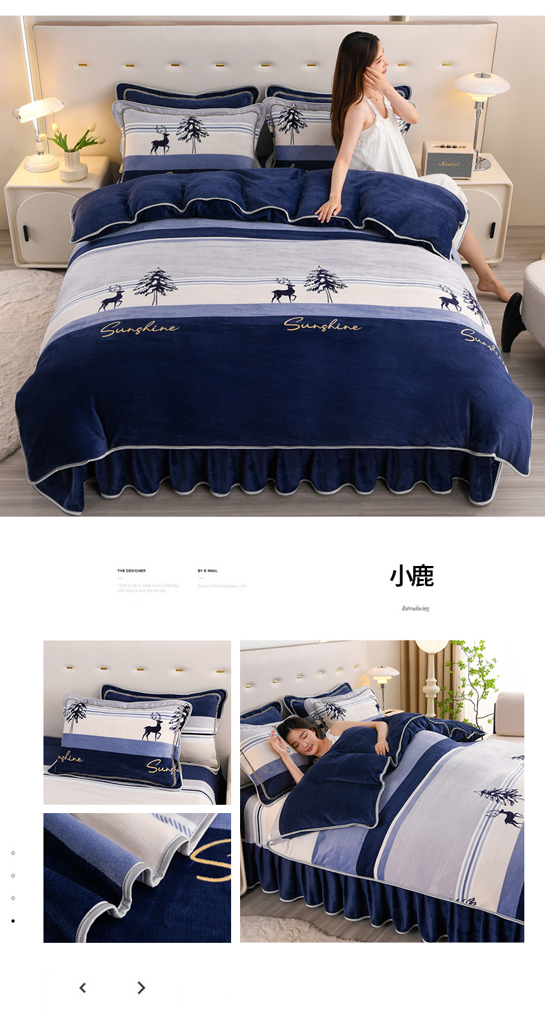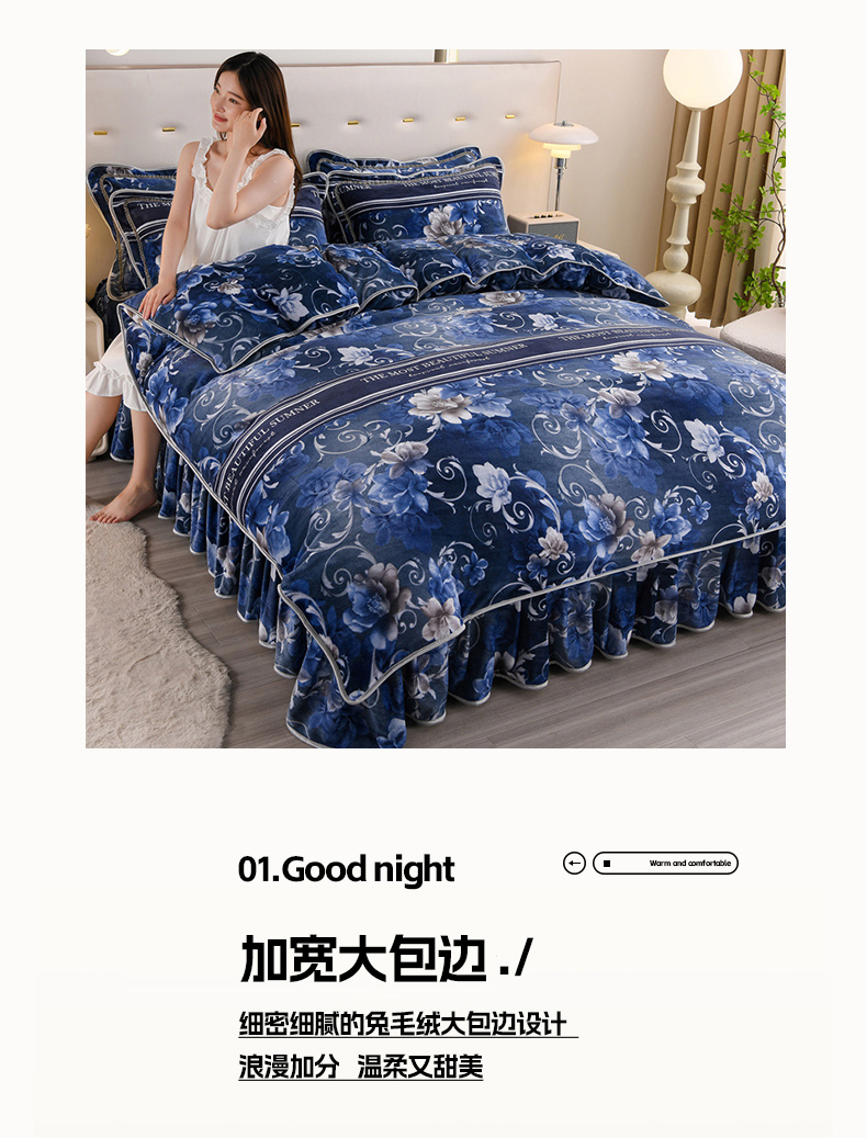 当前位置: 91家纺网 > 商品网购 > 床品套件 > 四件套 > 牛奶绒四件套 > 晚静 2025新款7斤牛奶绒四件套金貂法莱绒床裙款保暖绒三件套 蓝莲花
