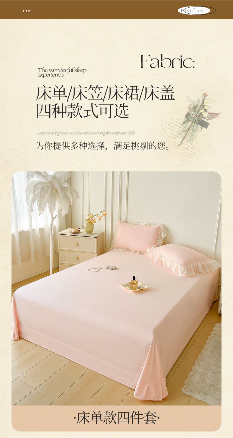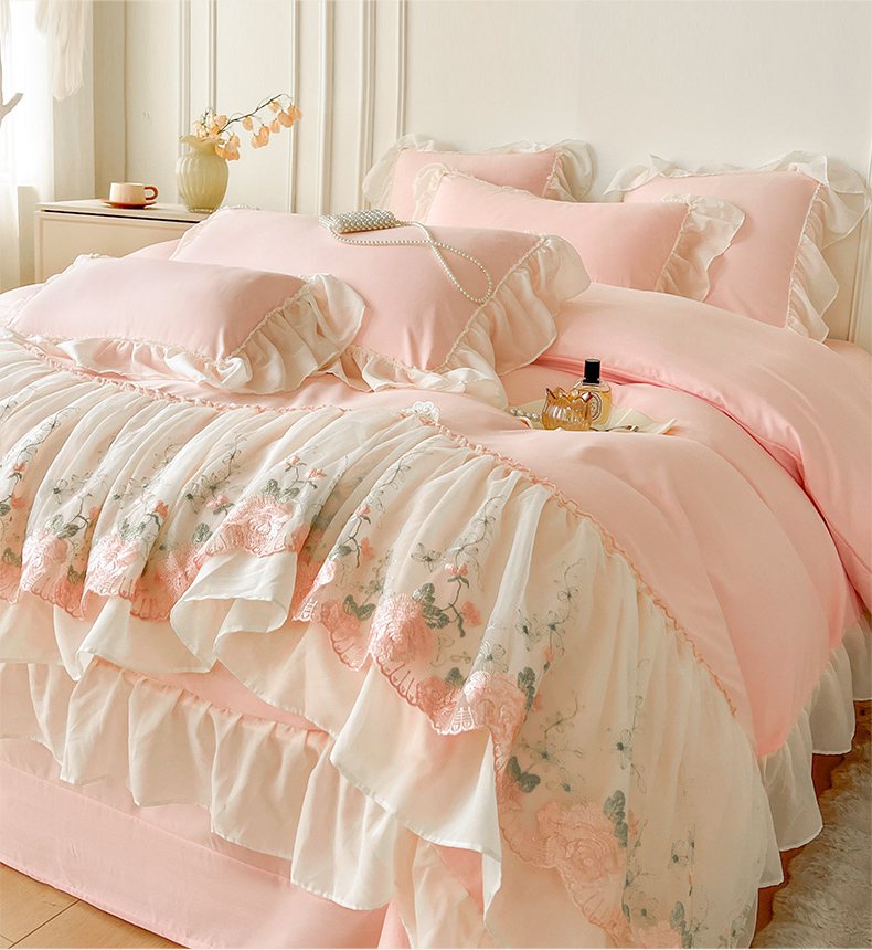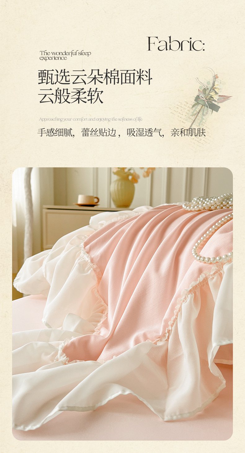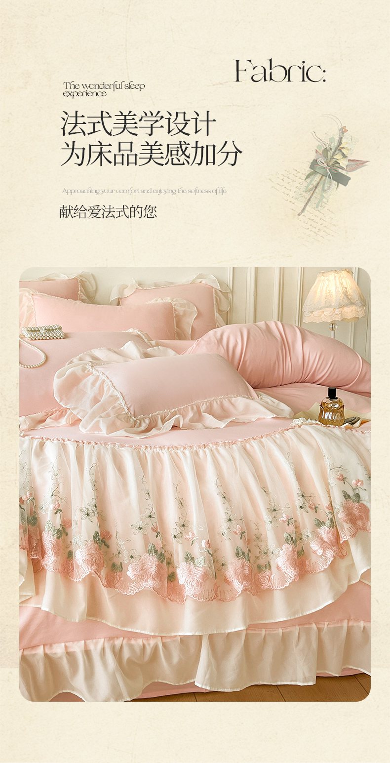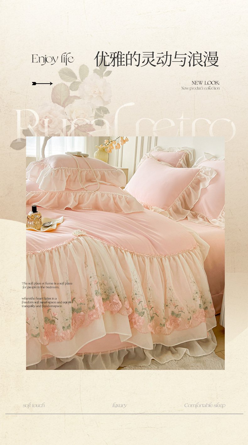 当前位置: 91家纺网 > 商品网购 > 床品套件 > 四件套 > 其它四件套 > 鼎丰家纺 2025新款蕾丝雪纺花边四件套-悦夏花影系列 悦夏花影-浅粉