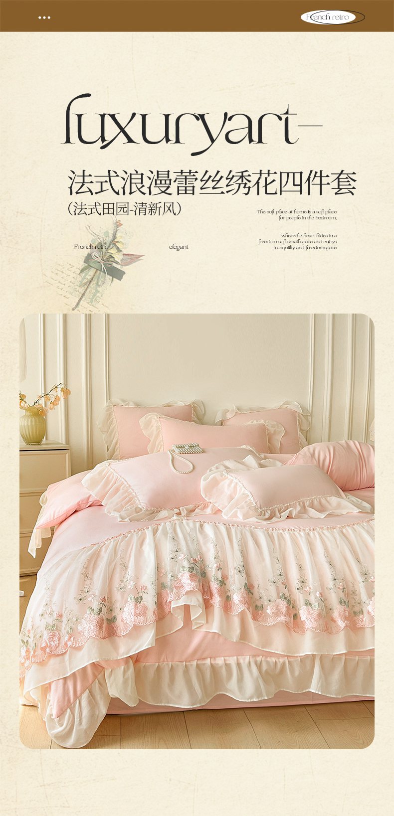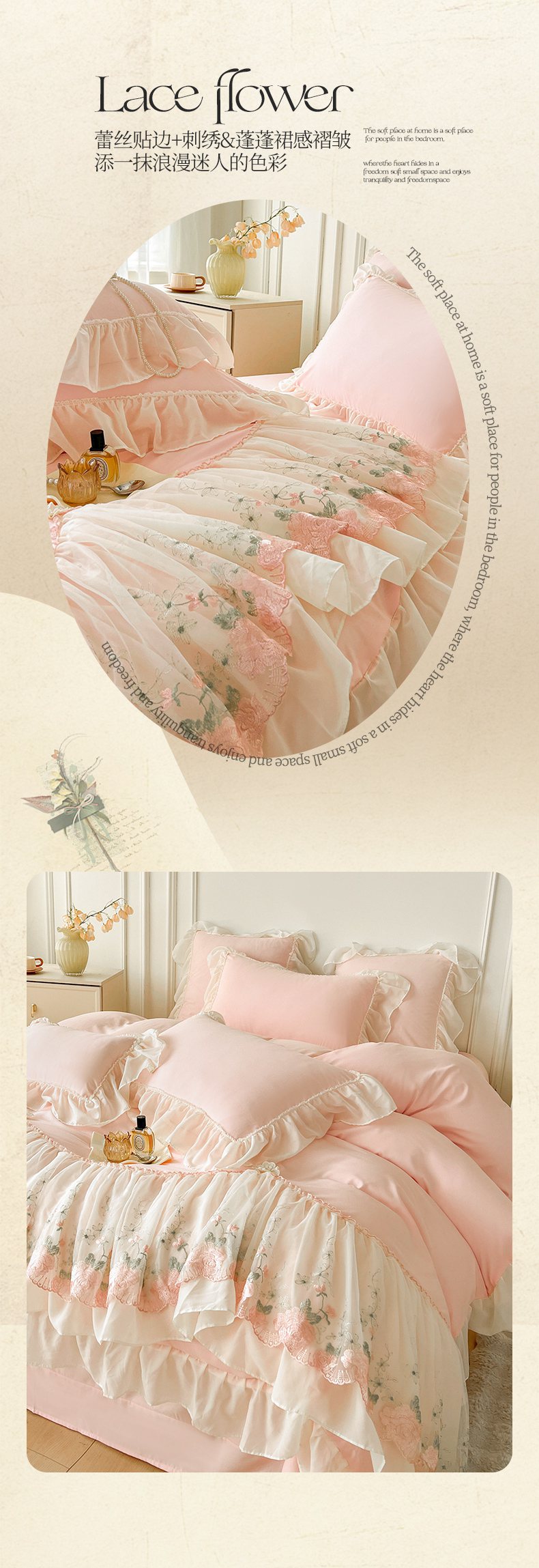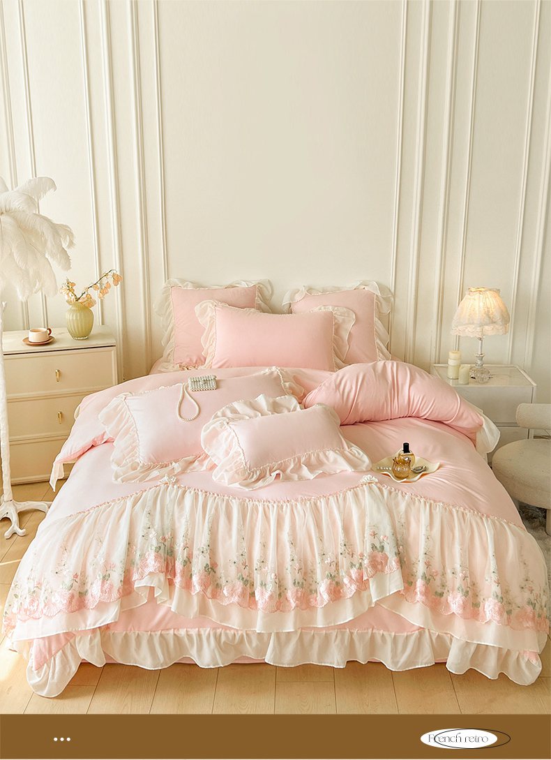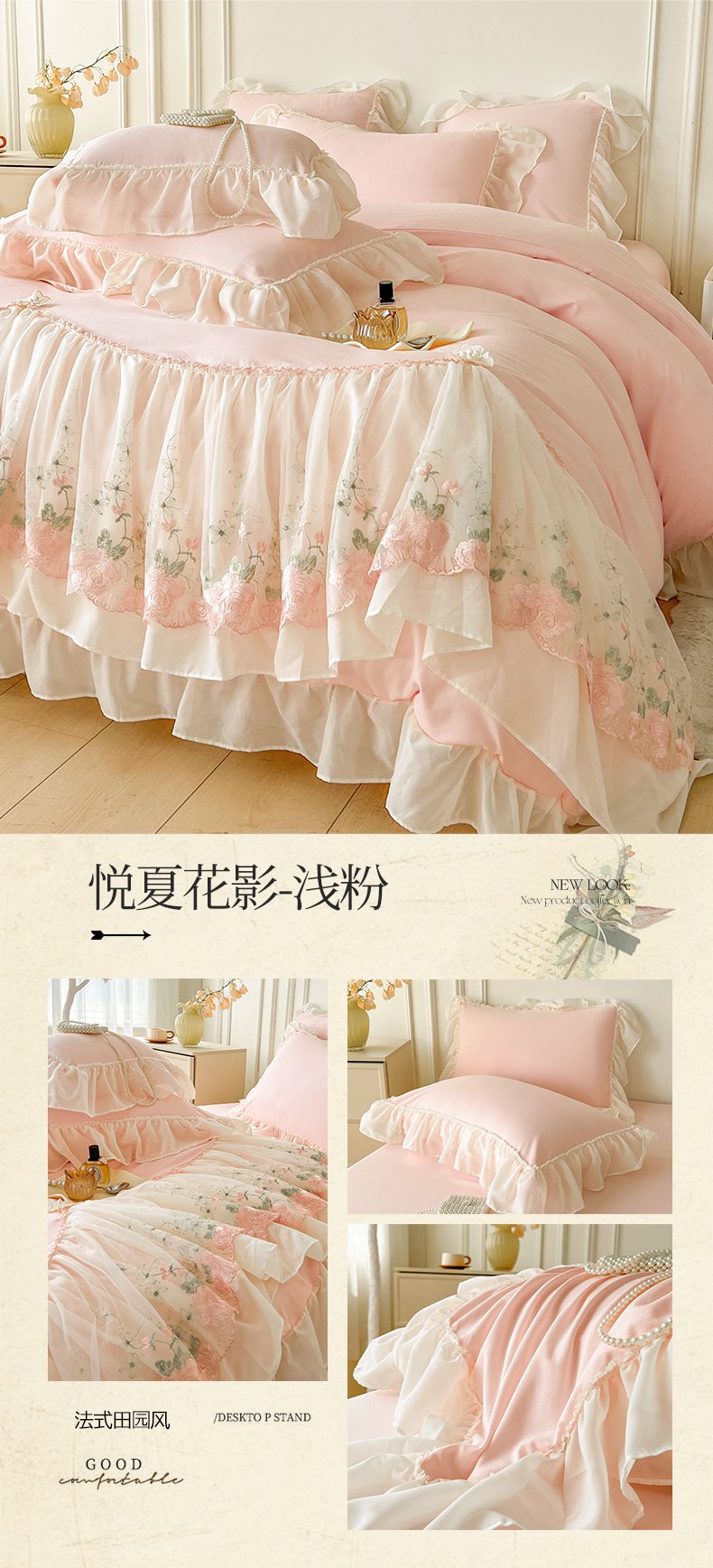 当前位置: 91家纺网 > 商品网购 > 床品套件 > 四件套 > 其它四件套 > 鼎丰家纺 2025新款蕾丝雪纺花边四件套-悦夏花影系列 悦夏花影-浅粉