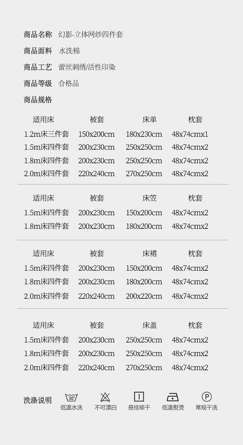 1.5m床裙款四件套 | ¥110.00 |