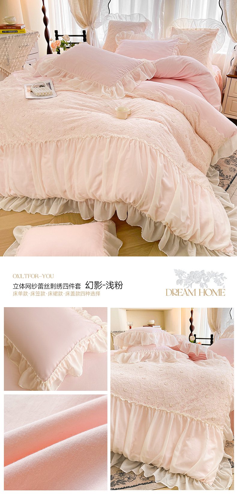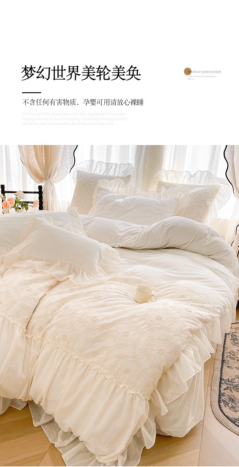 当前位置: 91家纺网 > 商品网购 > 床品套件 > 四件套 > 其它四件套 > 鼎丰家纺 2025新款立体蕾丝雪纺花边四件套-月光花园系列 月光花园-米色