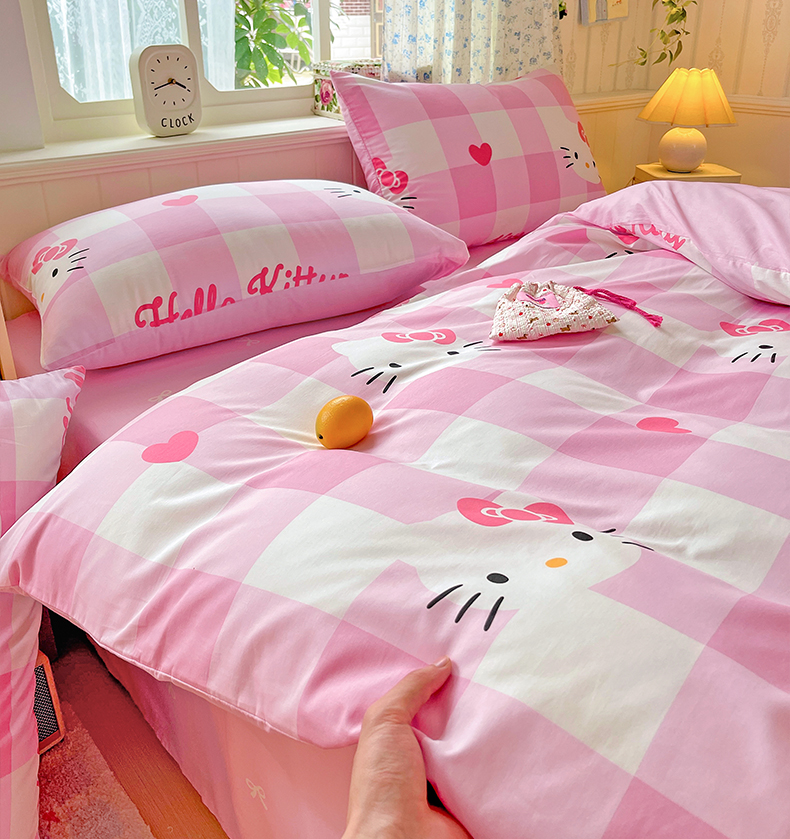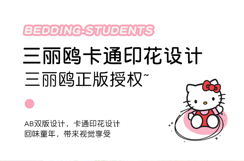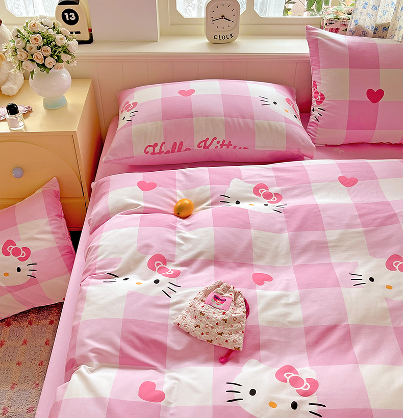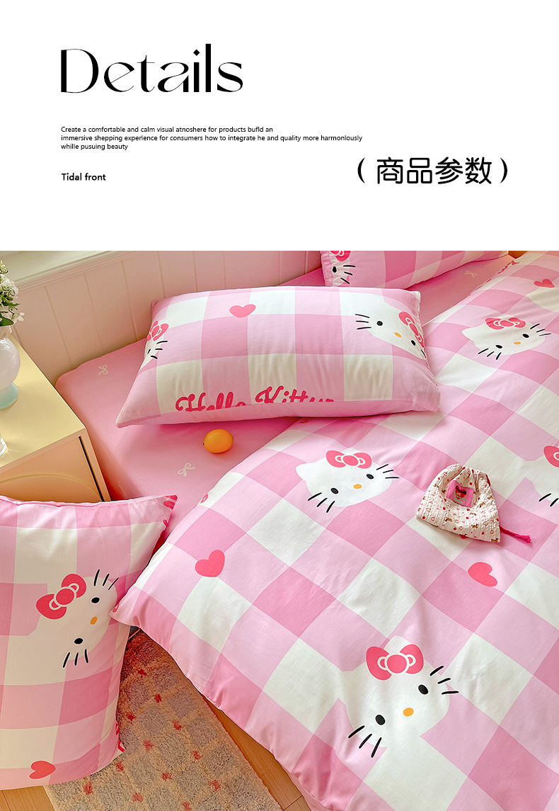 商品名称:朵希曼 2025新款全棉三丽鸥卡通印花系列四件套 告白凯蒂猫