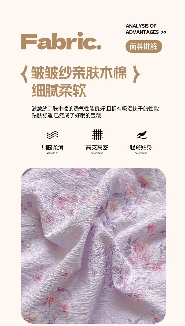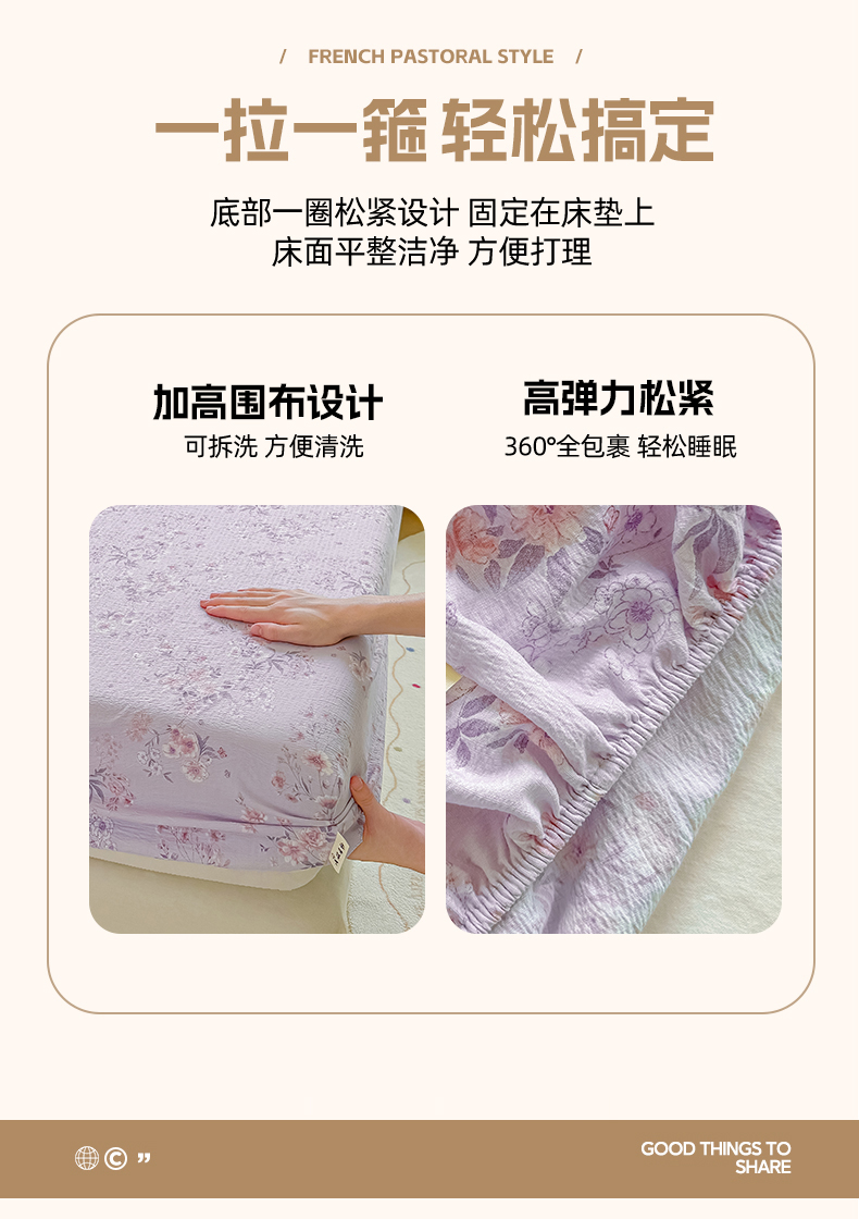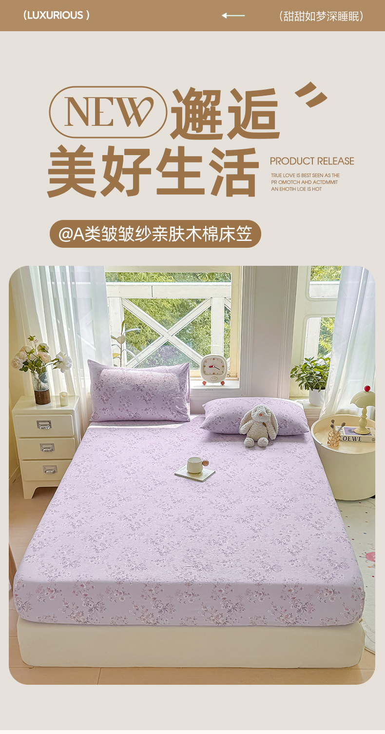 丝芙妮家居(原乐视家纺) 2026新款A类皱皱纱亲肤木棉床笠-系列二 蝶香