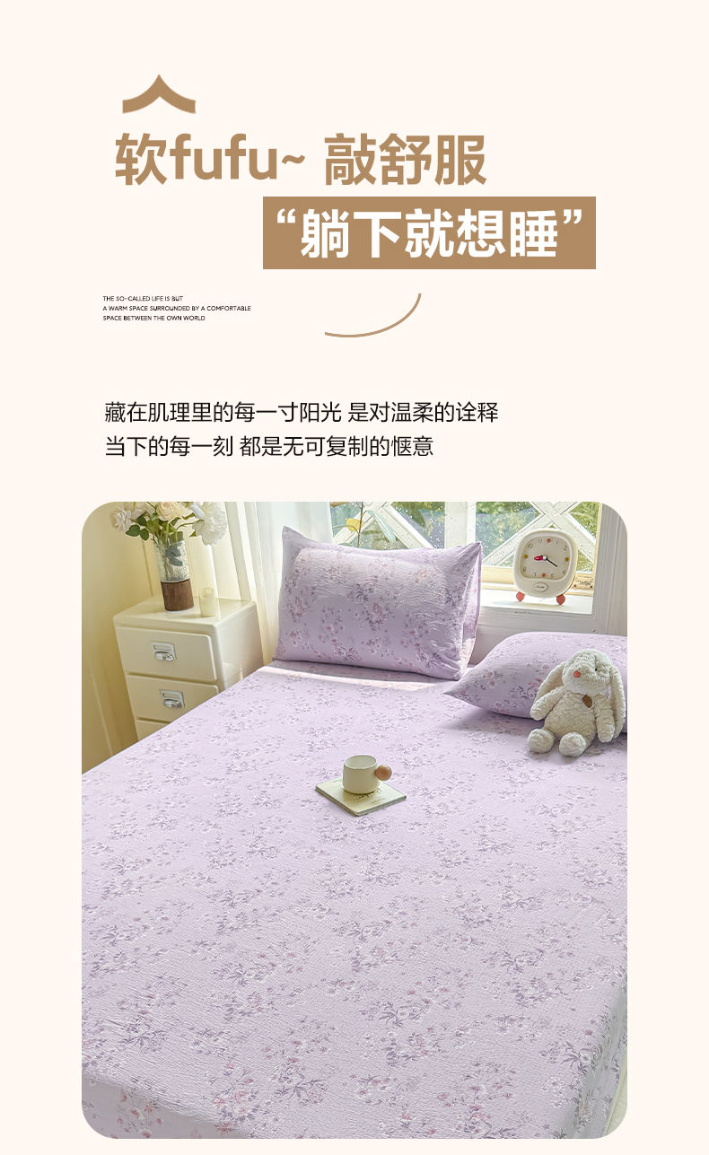 • 91家纺网 家纺一手货源 找家纺 (总)丝芙妮家居(原乐视家纺) 2026新款A类亲肤云朵棉夹棉保暖床笠,布丁小熊,草莓微甜,海棠花眠,可爱萌宠,蓝萱花町,漫游花境,墨色花园,南岛乐园,甜品狗狗,甜心小兔,晚安小狗,午后时光