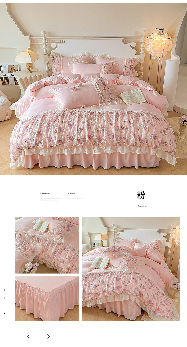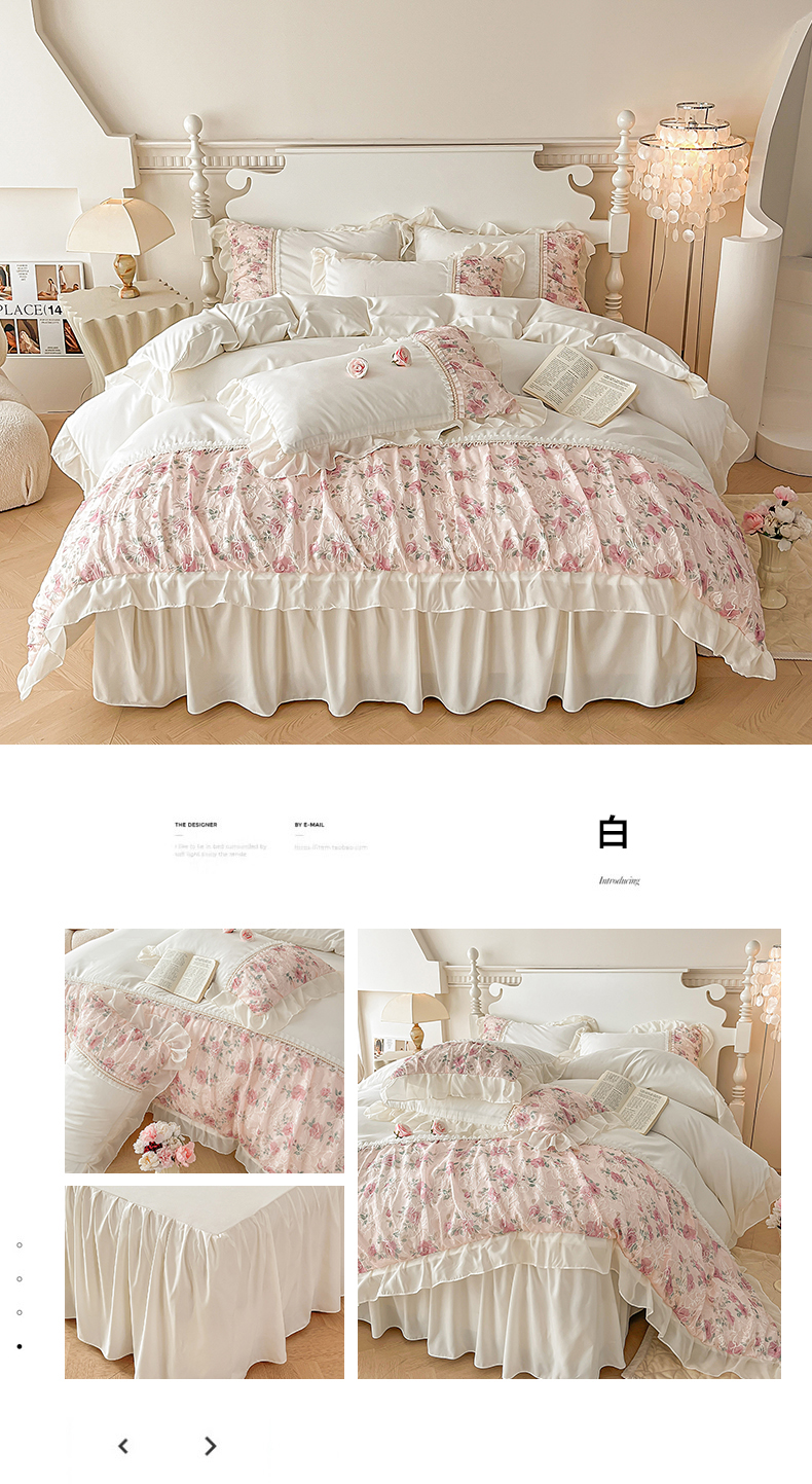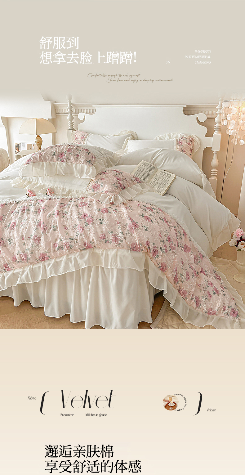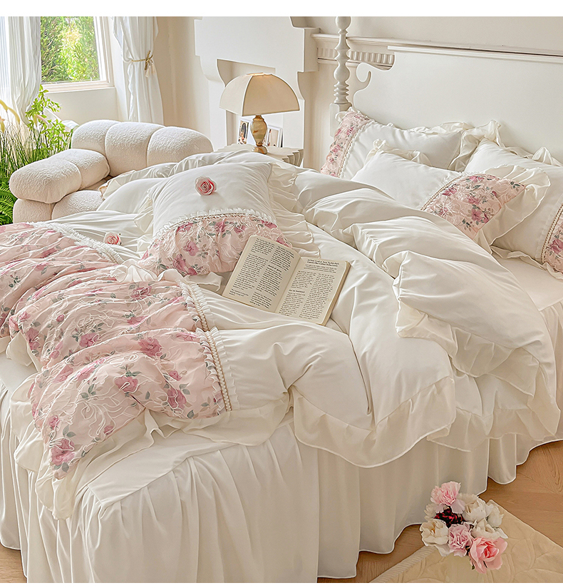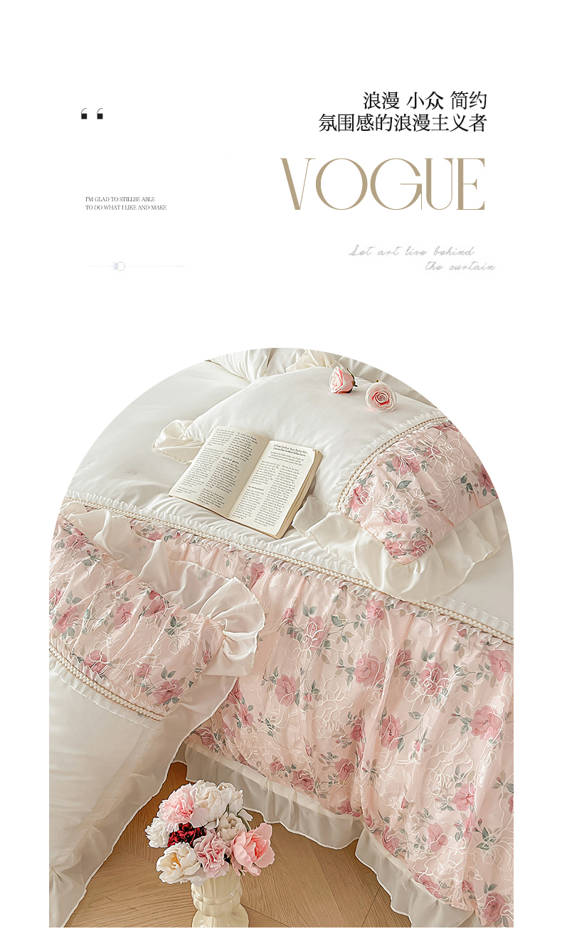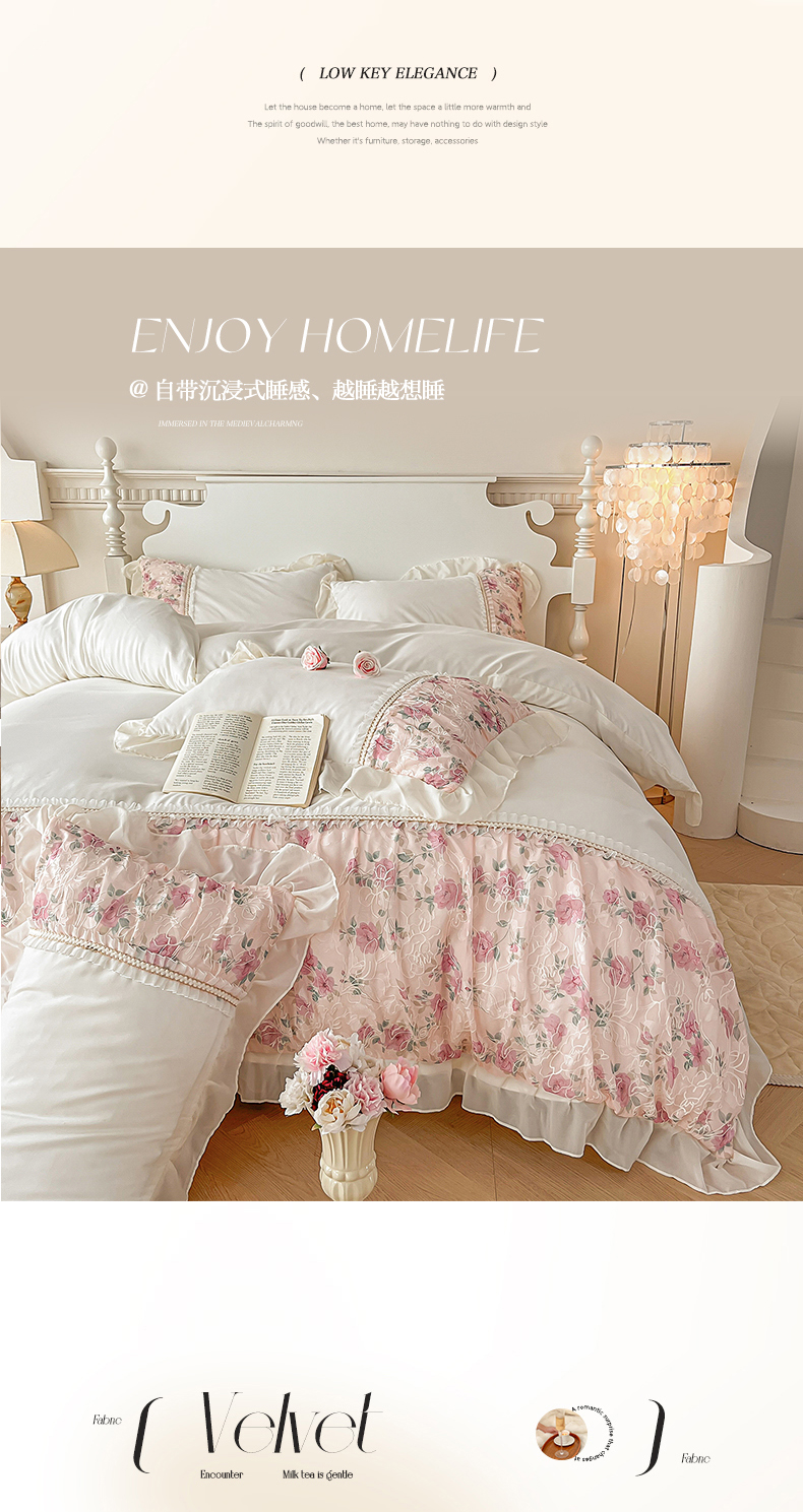 (总)富宁家纺 2025新款蕾丝刺绣数码印花款四件套-浅影玫瑰