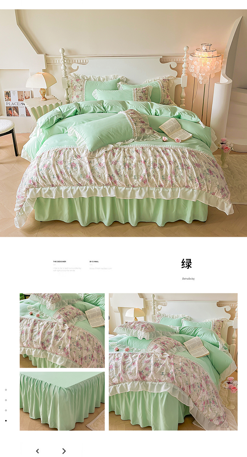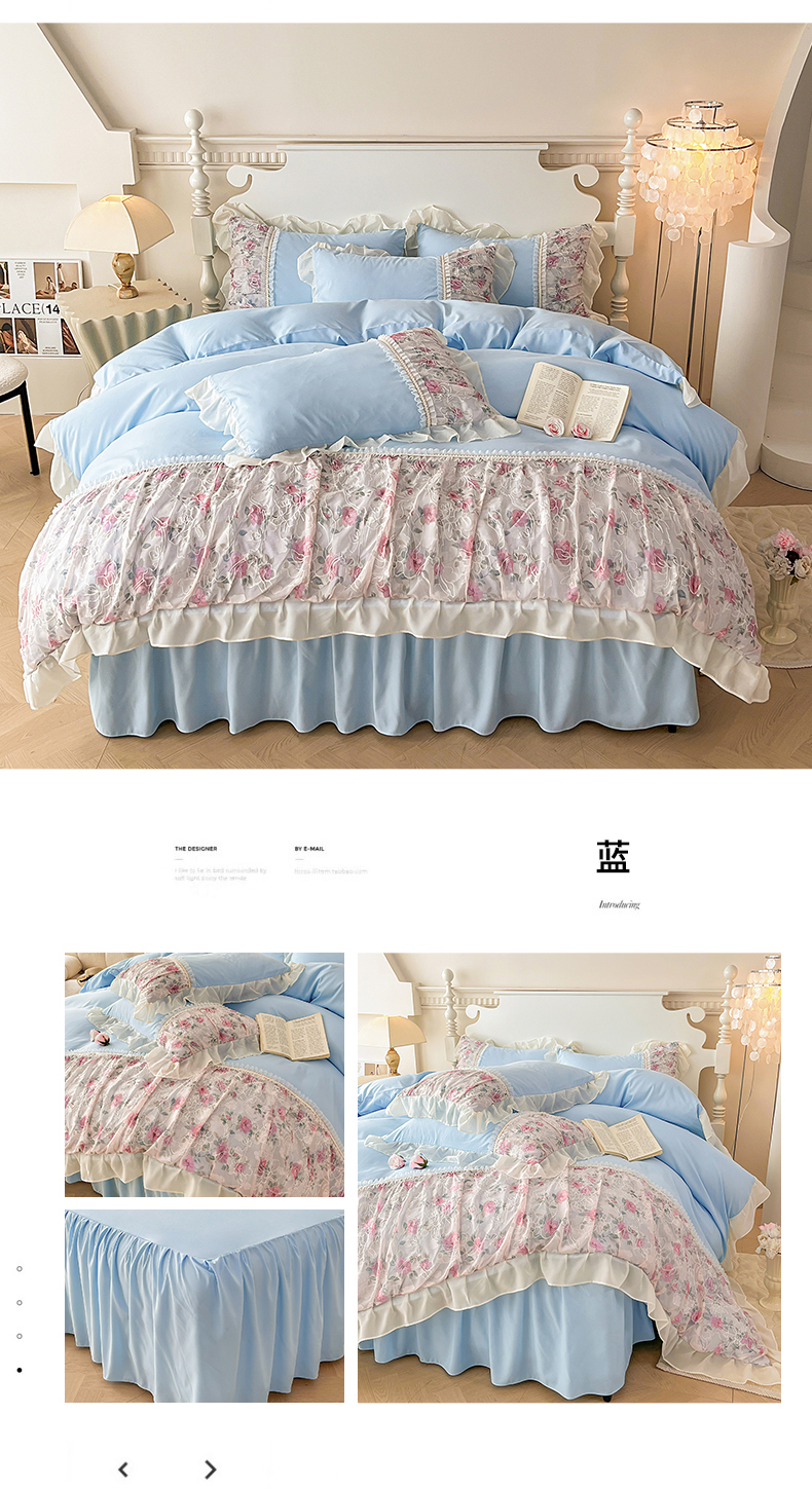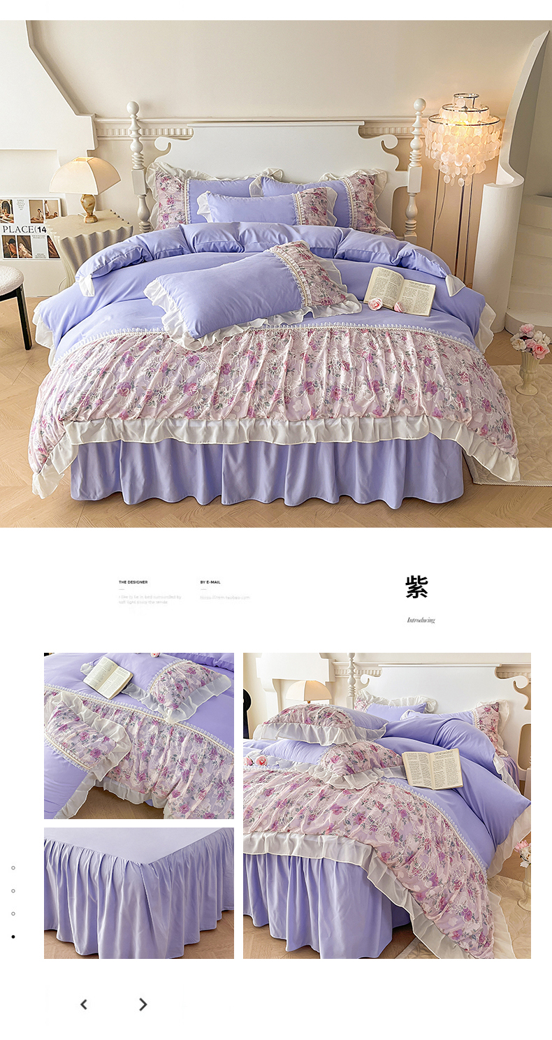 (总)富宁2025新款水洗亲肤棉雪纺蕾丝刺绣床裙床笠三件套四件套,潘多拉-白,潘多拉-粉,潘多拉-黄,潘多拉-蓝,潘多拉-绿,潘多拉-紫