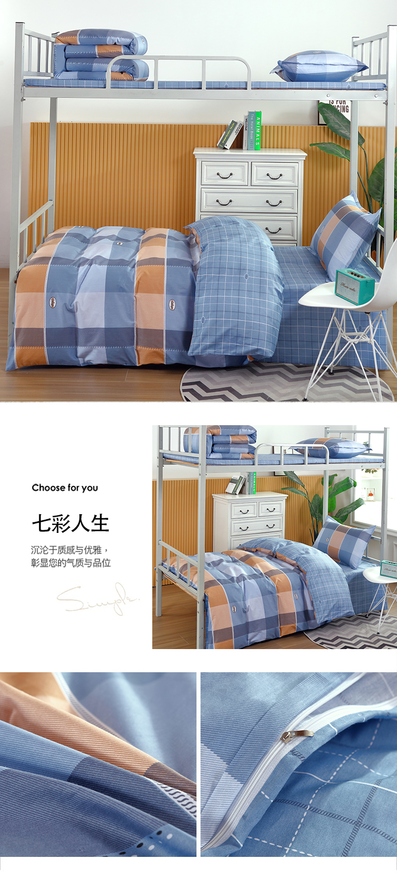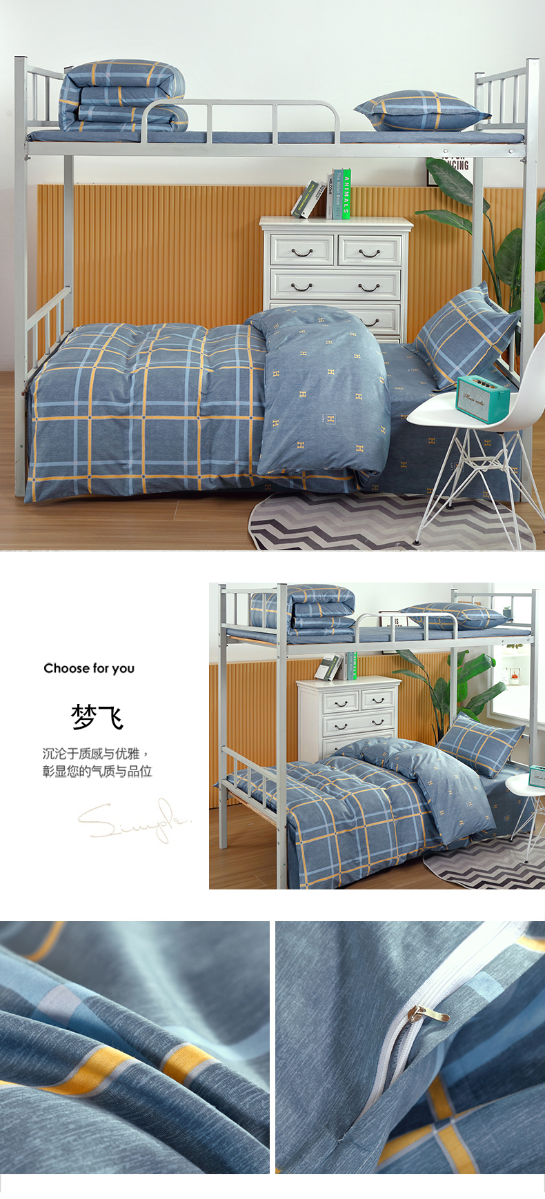 商品名称:(总)典曼家纺 2025新款13372学生宿舍三件套三件套源头工厂常年有货