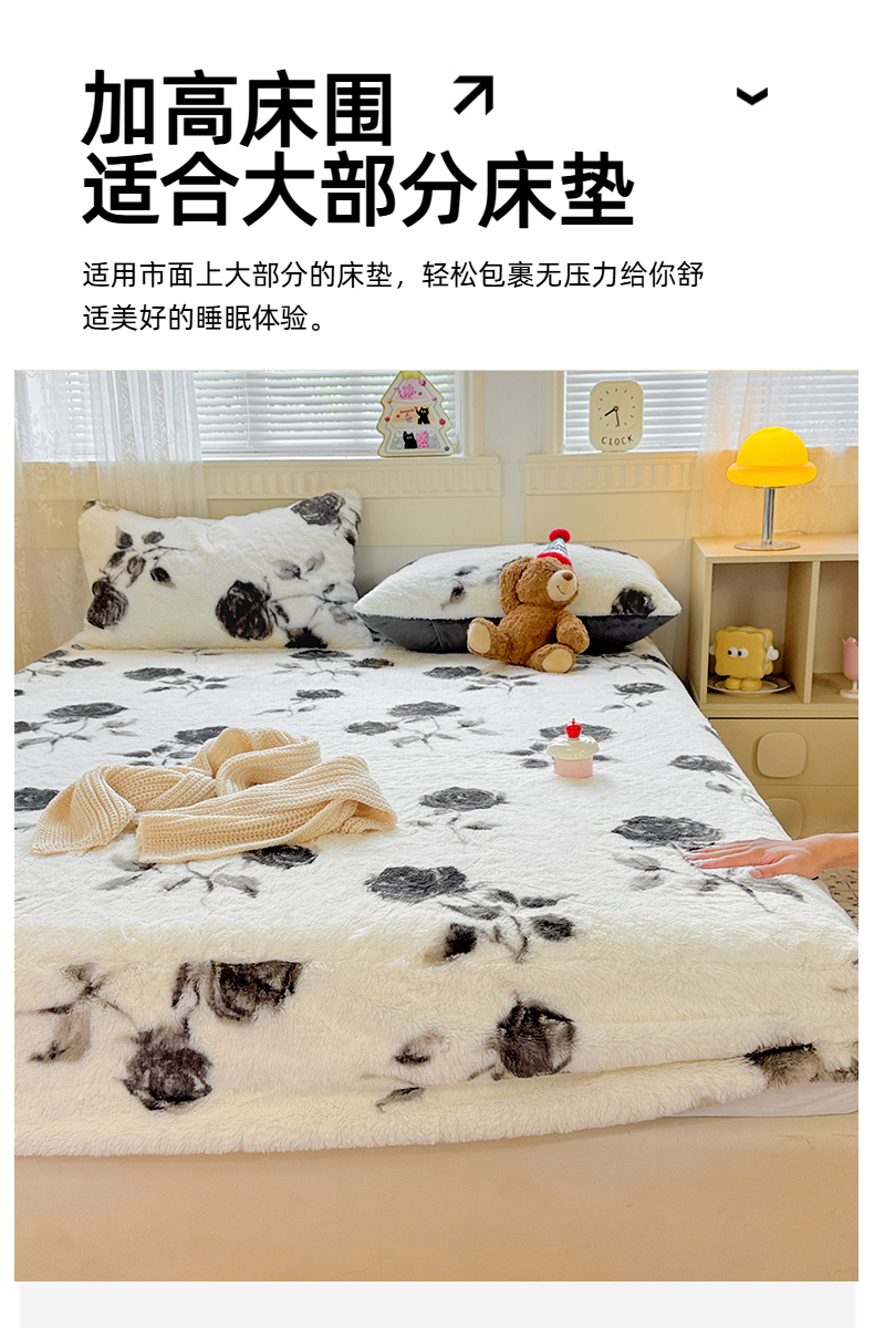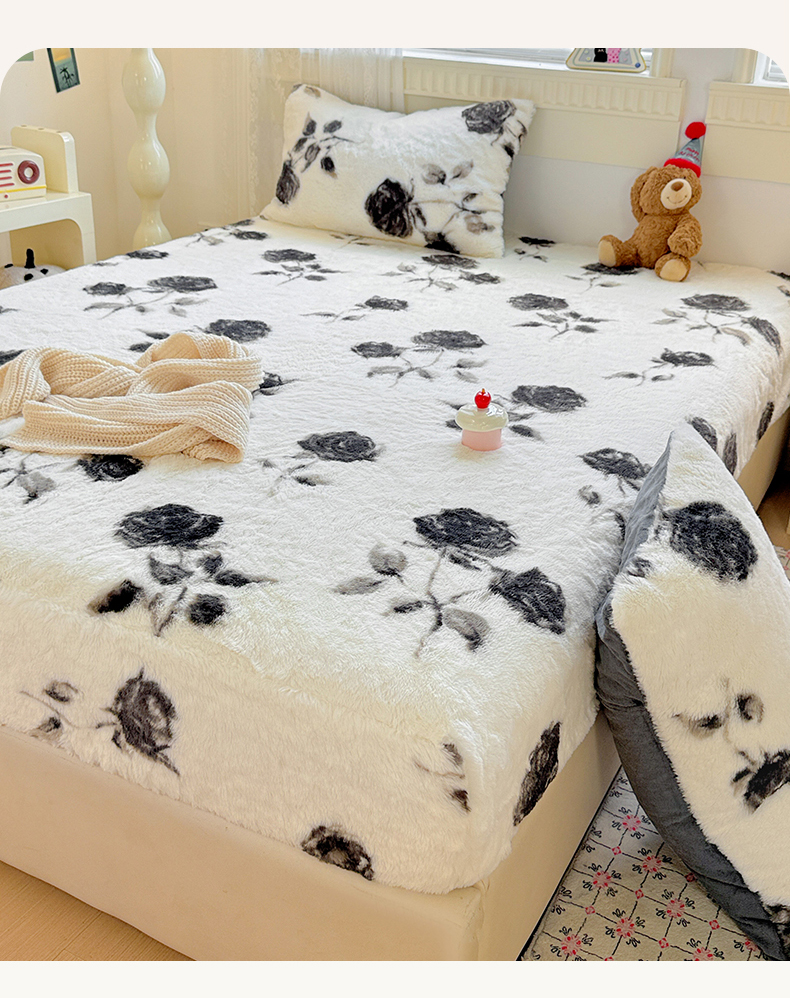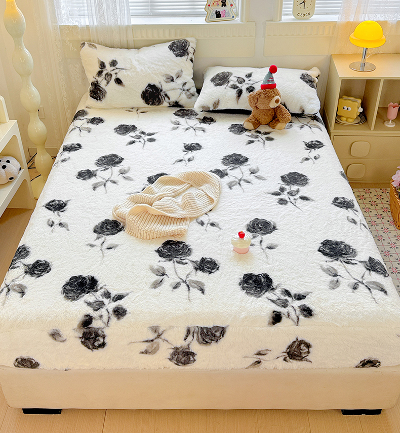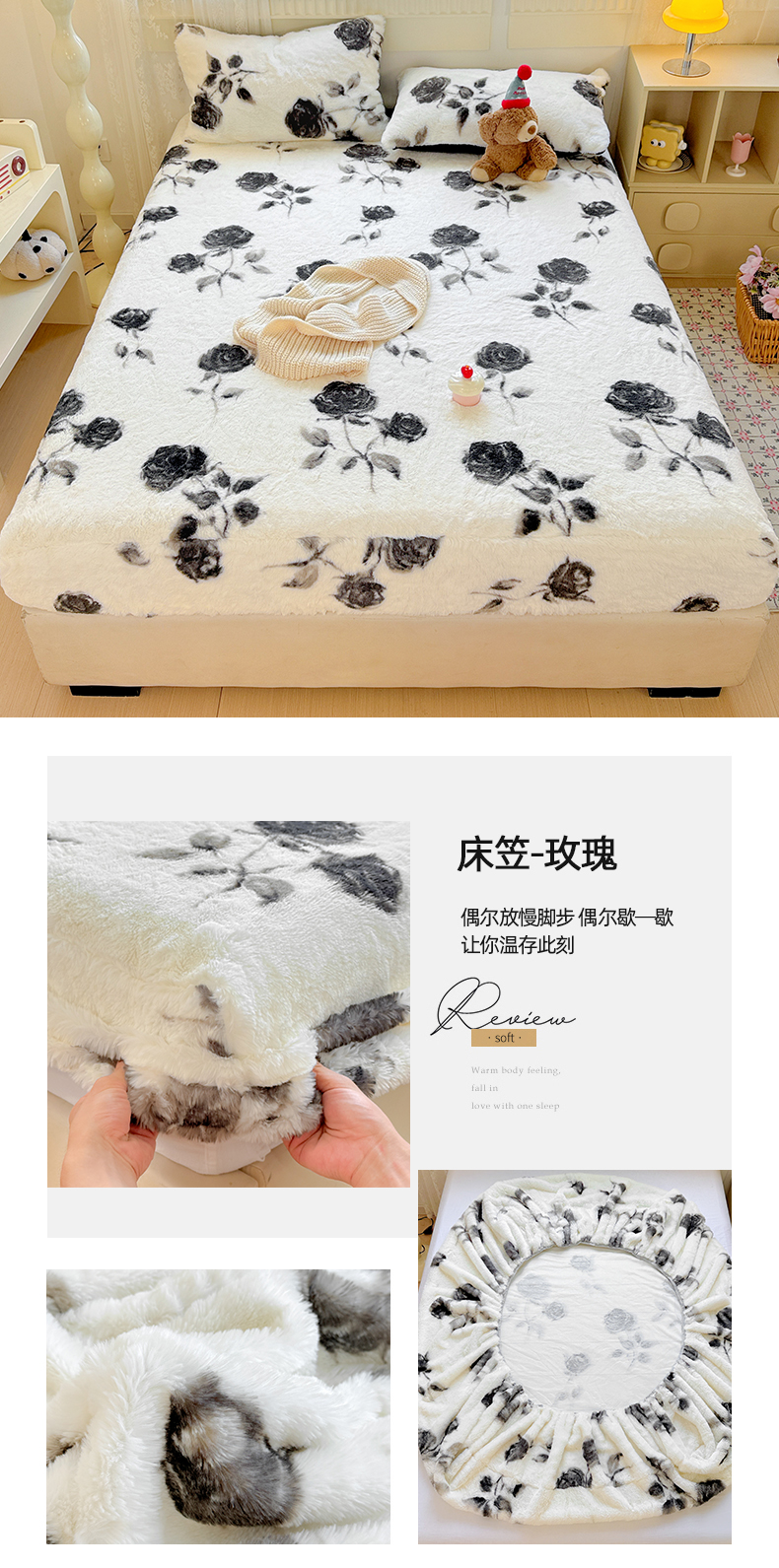 商品名称:2025新品兔毛印花单床笠 床笠-玫瑰