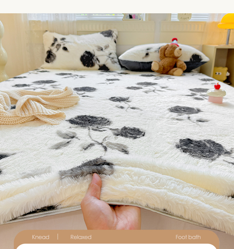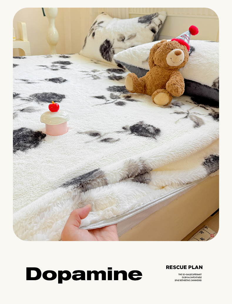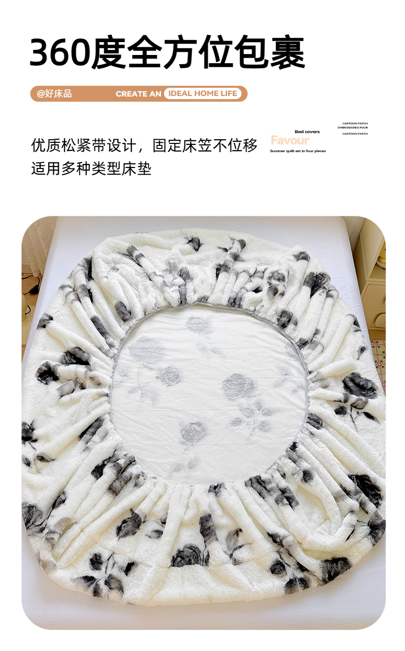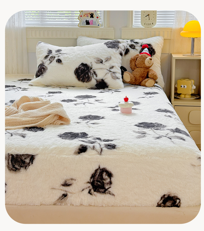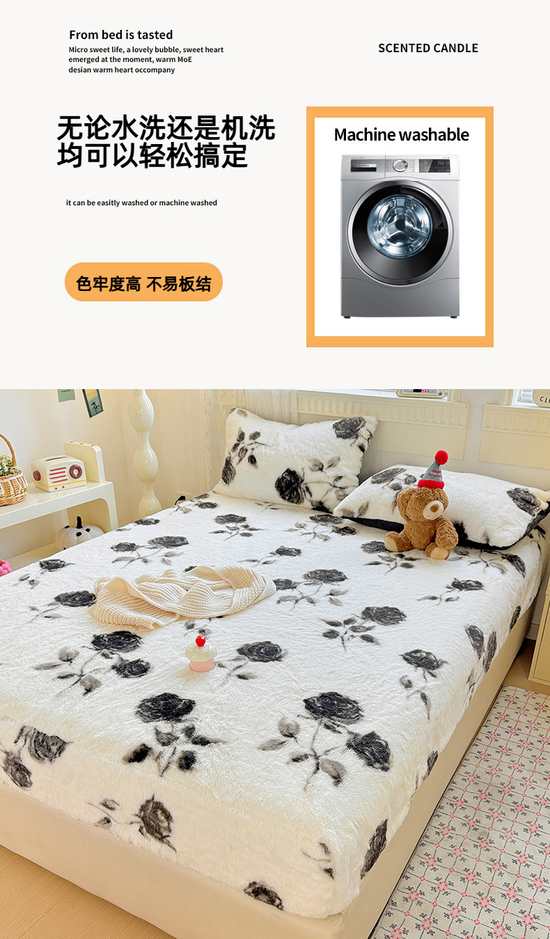 商品名称:2025新品兔毛印花单床笠 床笠-玫瑰