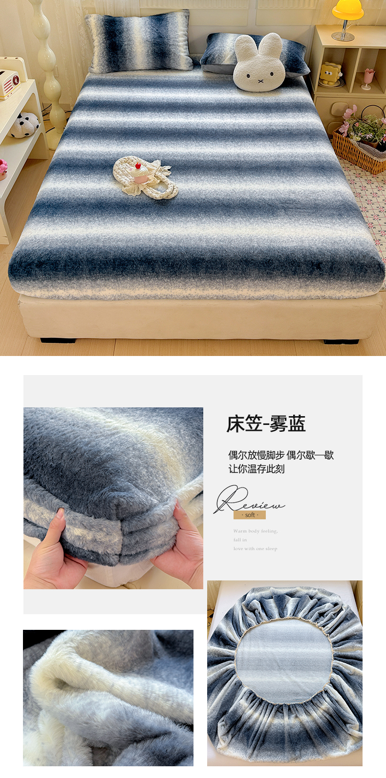 商品名称:2025新品兔毛印花单床笠 床笠-雾蓝