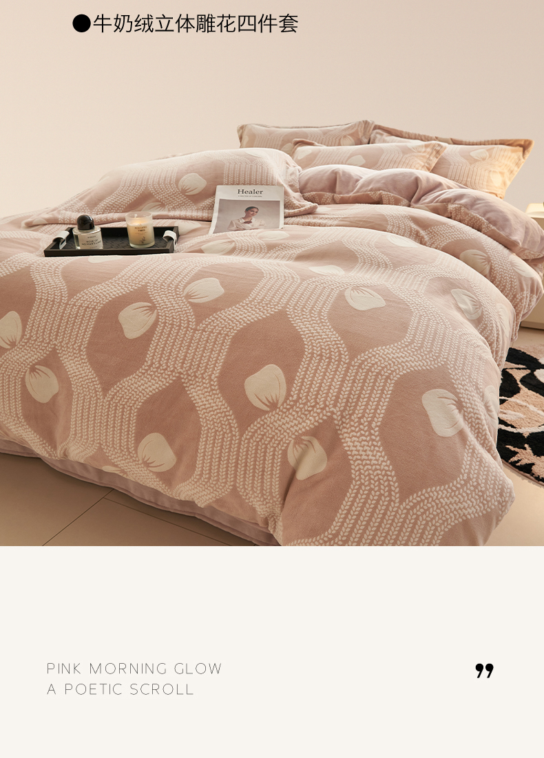 恒爱家纺 2025新款牛奶绒立体剪花四件套 橞郁而安