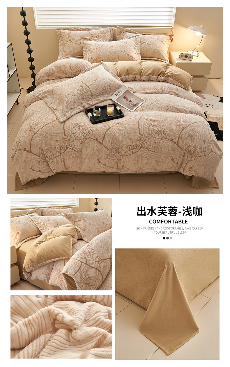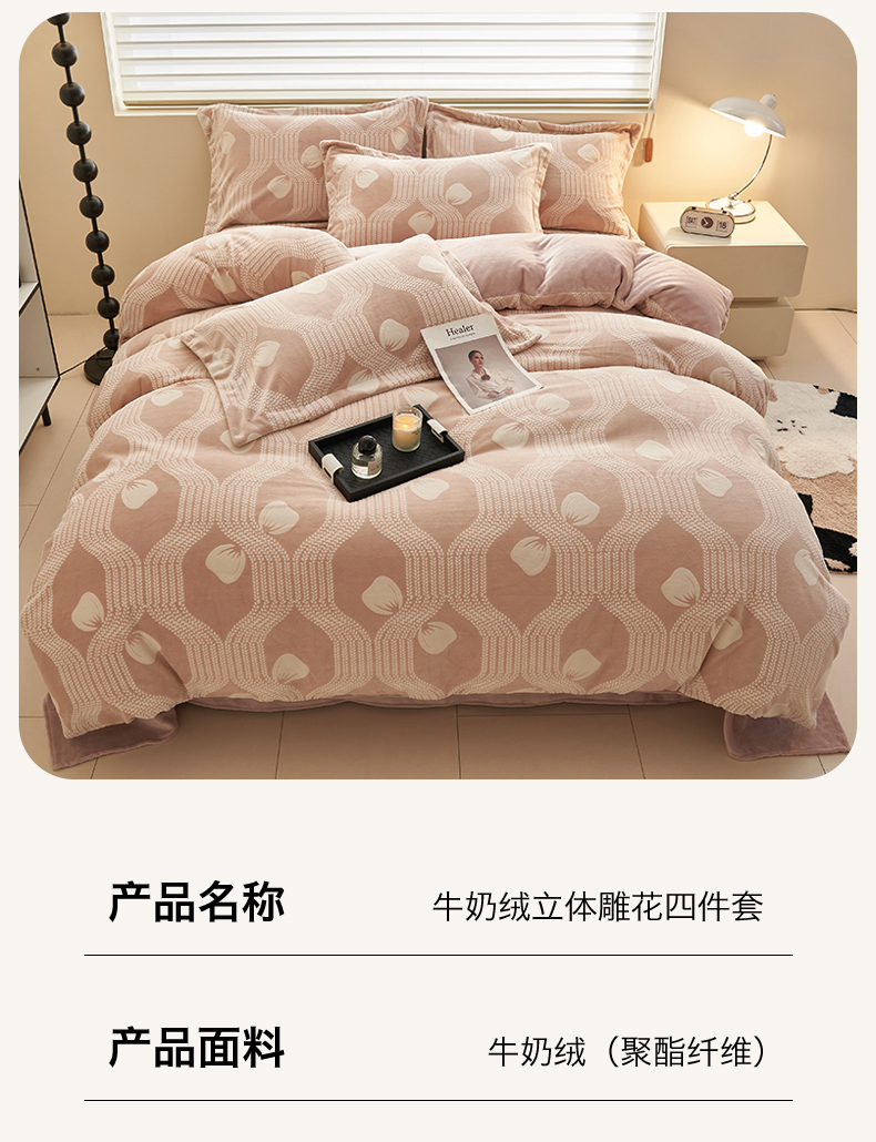 商品名称:恒爱家纺 2025新款牛奶绒立体剪花四件套 橞郁而安