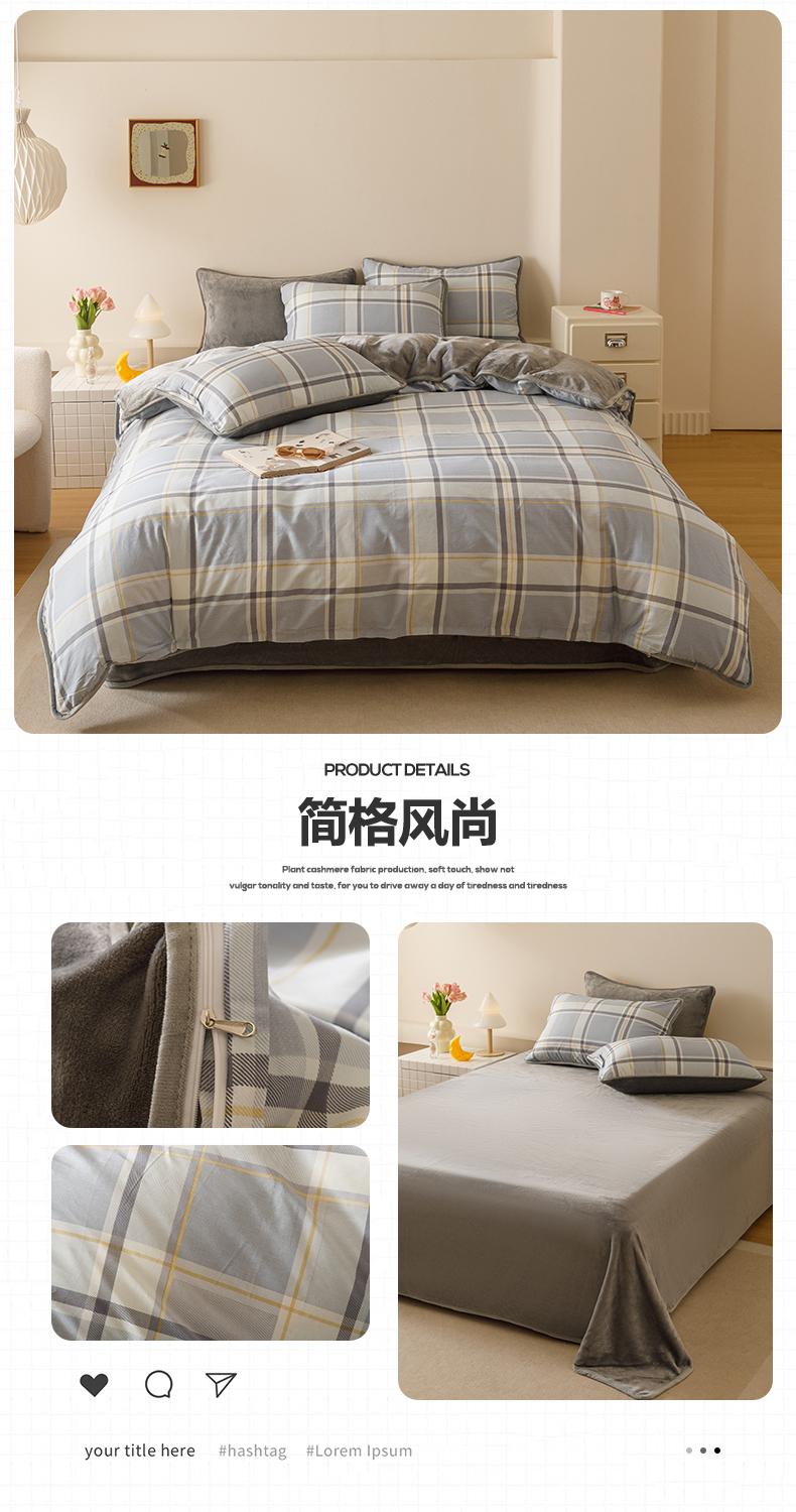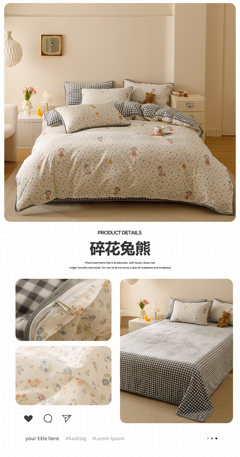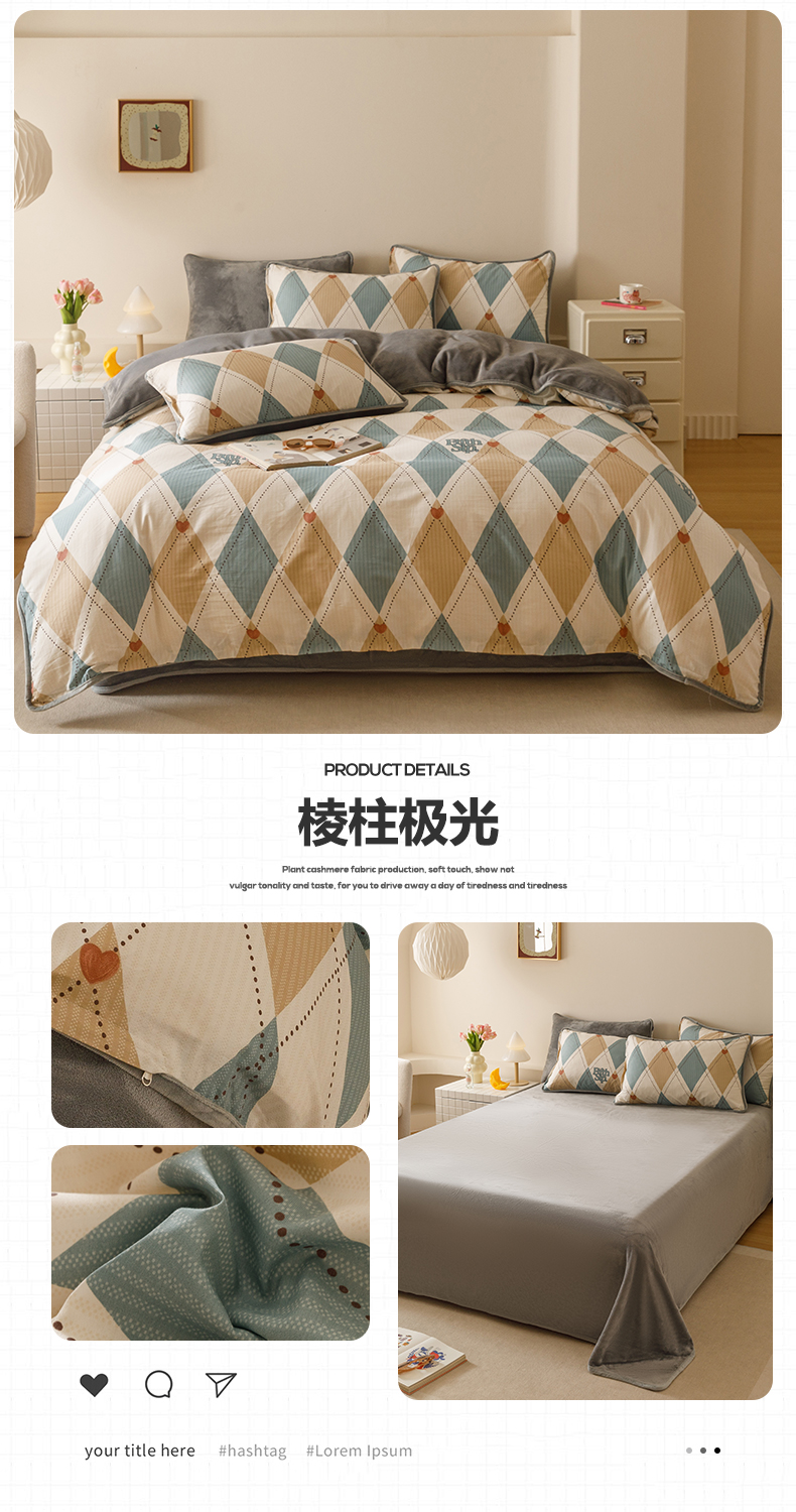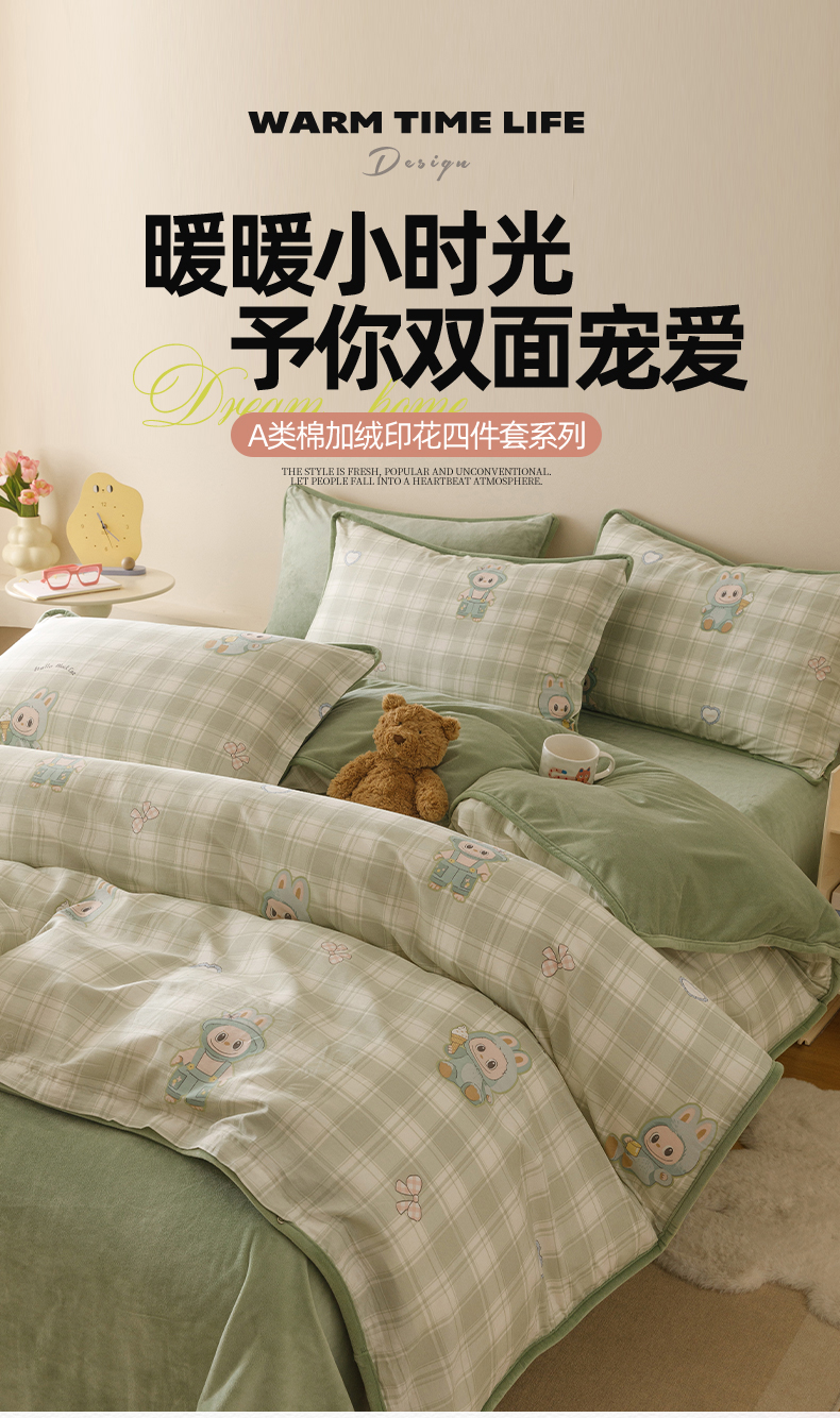 当前位置: 91家纺网 > 商品网购 > 床品套件 > 四件套 > 其它四件套 > 红粉佳人家纺 2025新款A类棉加绒印花四件套 简格风尚