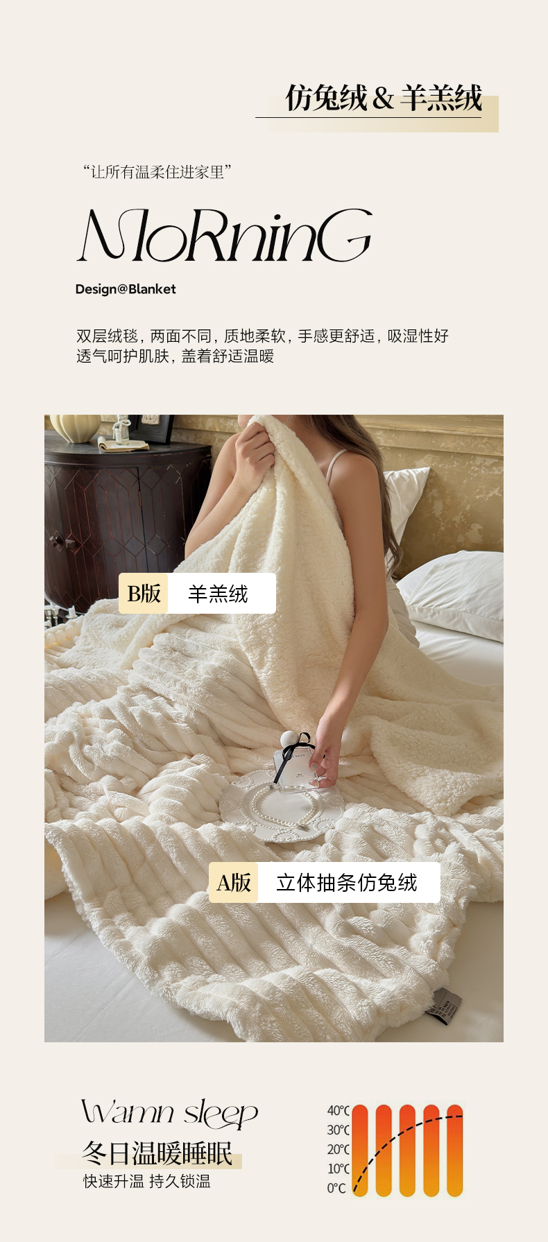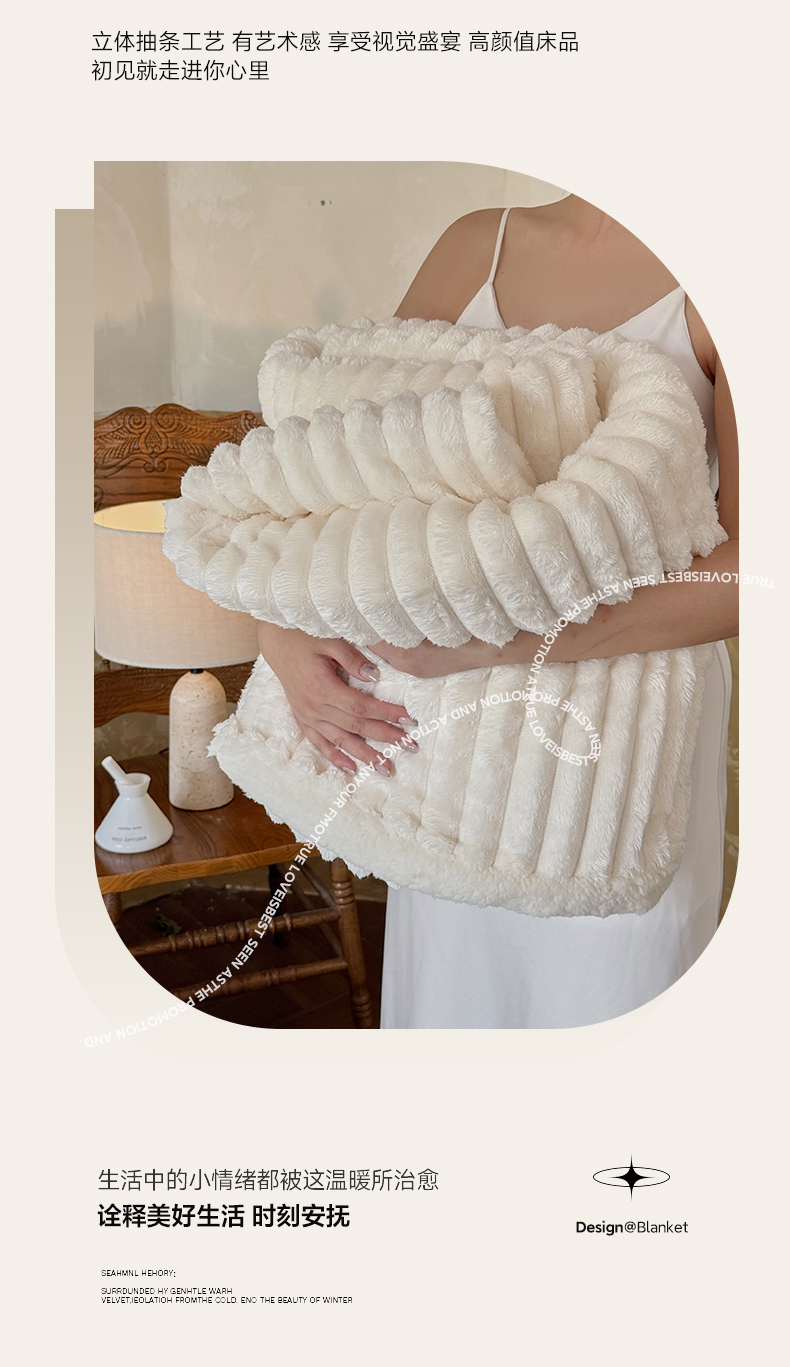 (总)艾咪 2025新款立体抽条纹双层毯子仿兔绒羊羔绒毛毯