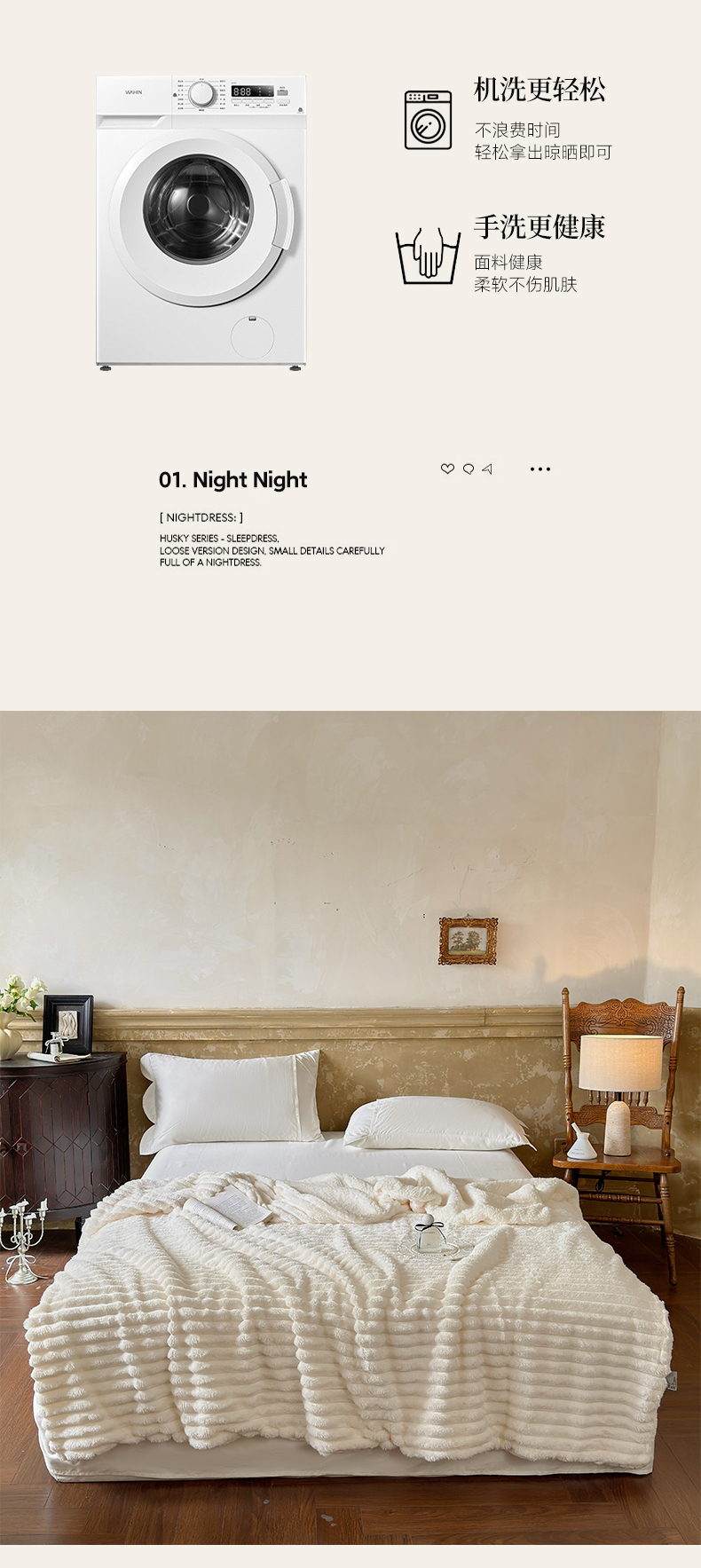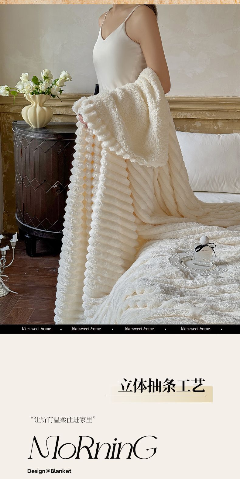 商品名称:(总)艾咪 2025新款立体抽条纹双层毯子仿兔绒羊羔绒毛毯