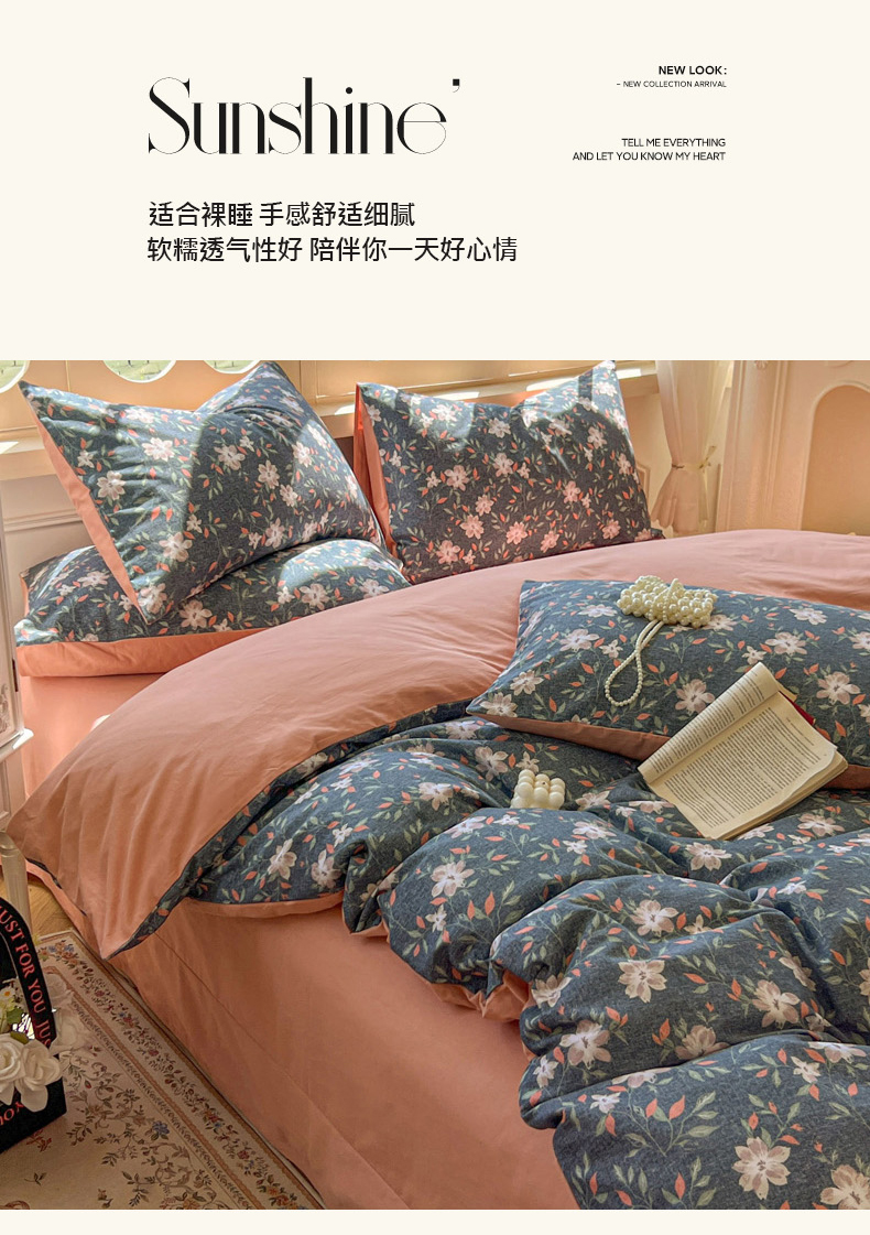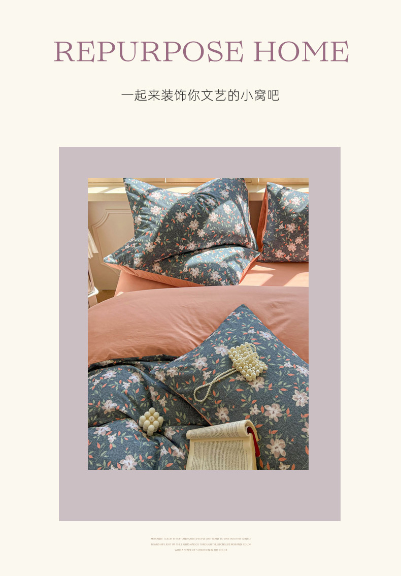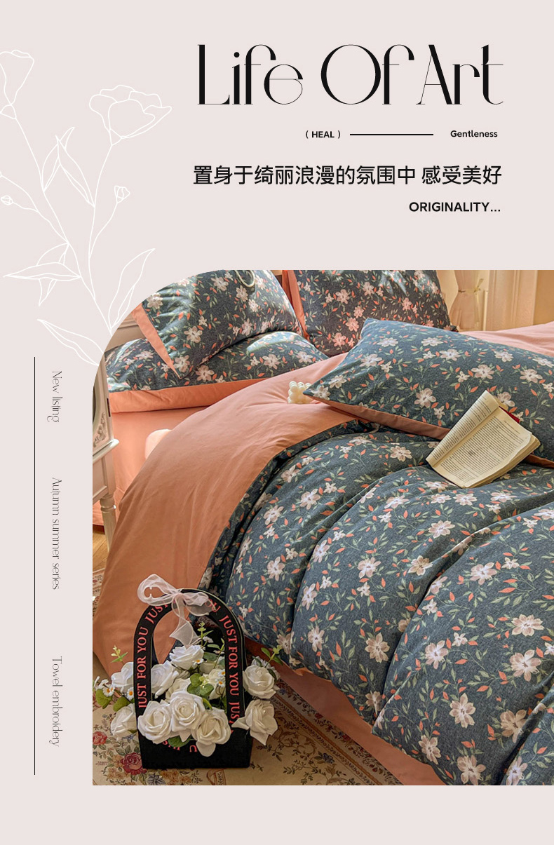 (总)田野 2022新款水洗棉小清新小碎花全棉四件套,花丛,花涧,绿婉,曼舞,桃夭,甜馨草莓,兔兔,银杏