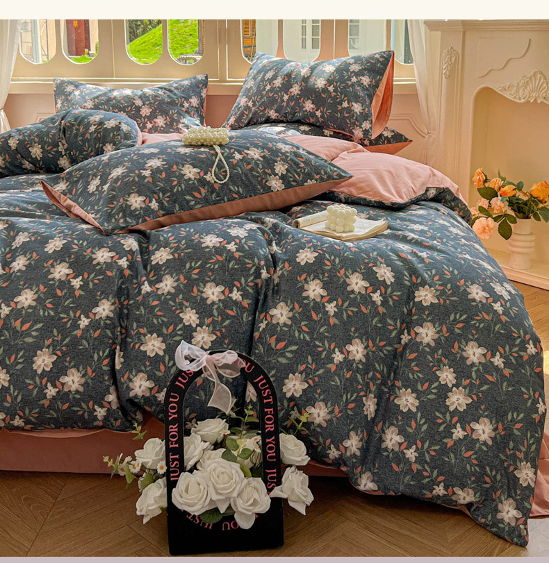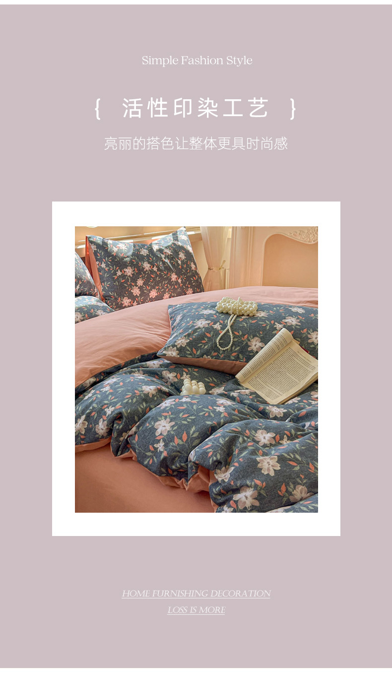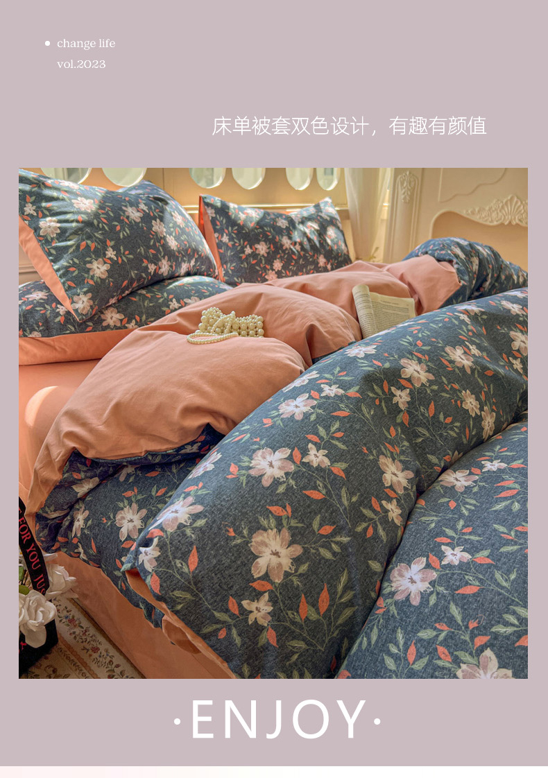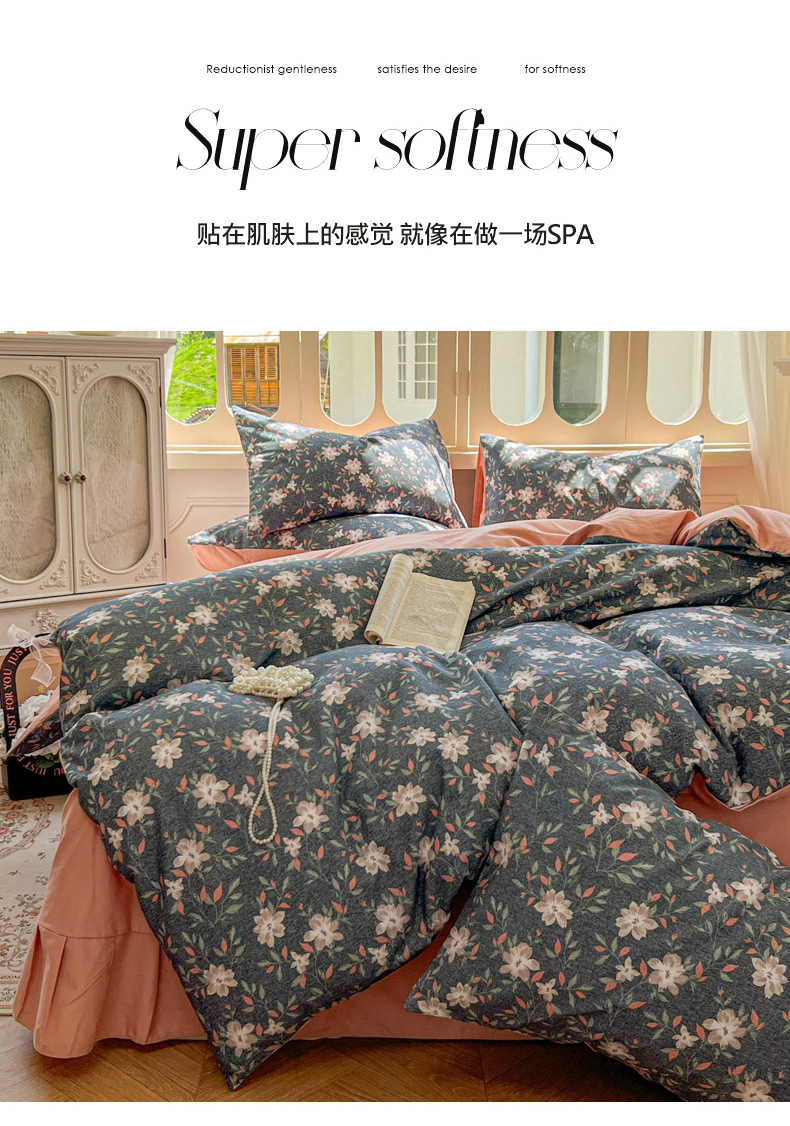 (总)田野 2022新款水洗棉小清新小碎花全棉四件套,花丛,花涧,绿婉,曼舞,桃夭,甜馨草莓,兔兔,银杏